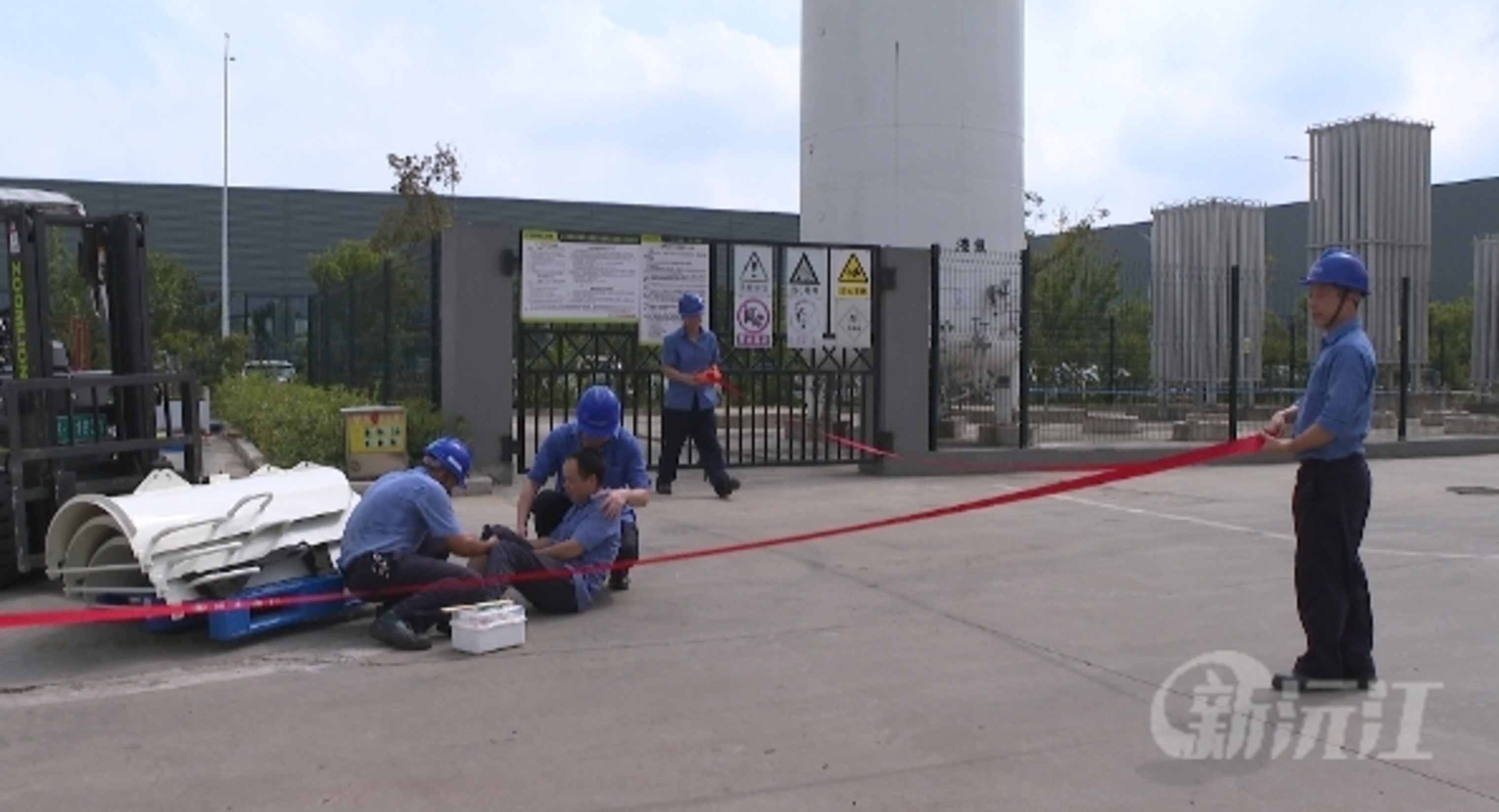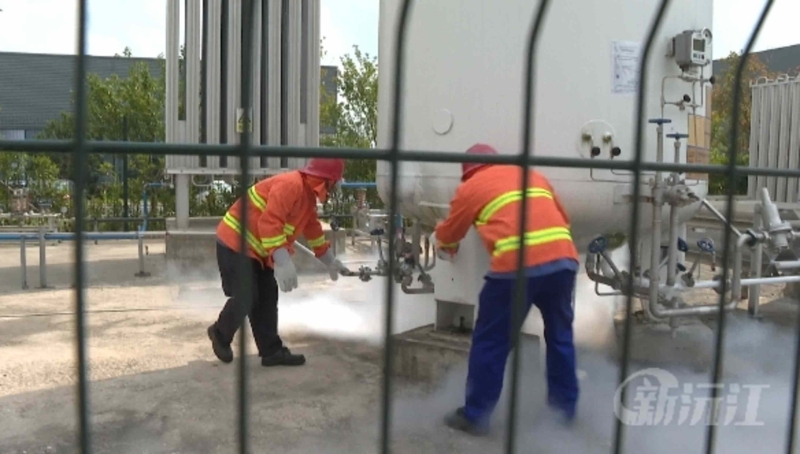 在另一边,液氮储罐区充满大量的白雾、并伴有刺耳的气体泄漏声音,员工发现后立即汇报现场情况。在做好隔离后,维修人员穿戴防护服、头盔、防冻手套后进入储罐区检查泄漏点,经仔细排查后确认是液氮储罐安全阀组爆破片冲破导致泄漏,维修人员更换爆破片、检漏,确认安全阀组可以运行。