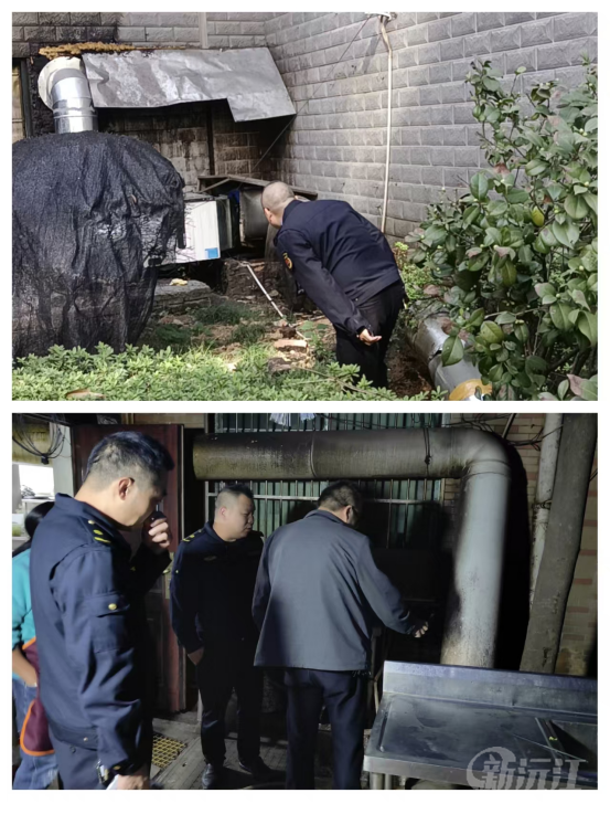 执法队员化身“环保卫士”,深入餐饮经营一线,将检查重点精准锁定在油烟净化器的全流程管理——从安装“有没有”、使用“动不动”,到清洗“勤不勤”、维护“好不好”,逐一细致查看,不放过任何一处油烟“跑冒滴漏”隐患点。同时,队员们采取进店询问与后厨实地勘察相结合的方式,严格对照餐饮油烟排放标准,现场评估净化设备运行实效,详细记录每家商户情况,为后续监管筑牢信息根基。
