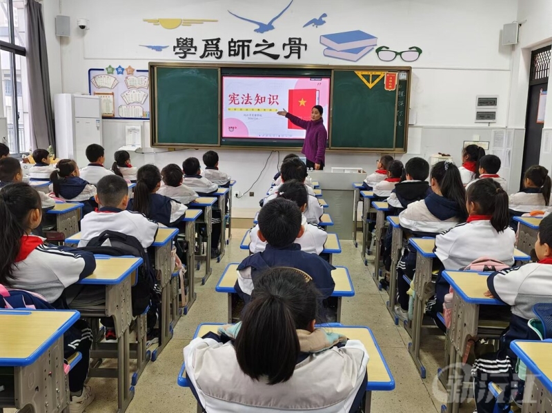 12月4日,“国家宪法日”当天,普法学习迎来高潮。上午9时整,各班准时登录普法网,收看宪法活动网络直播。屏幕前,学生们坐姿端正,目光专注,跟读宪法条文,声音清脆而坚定,让宪法的每一字、每一句,穿过网络,直抵心间。