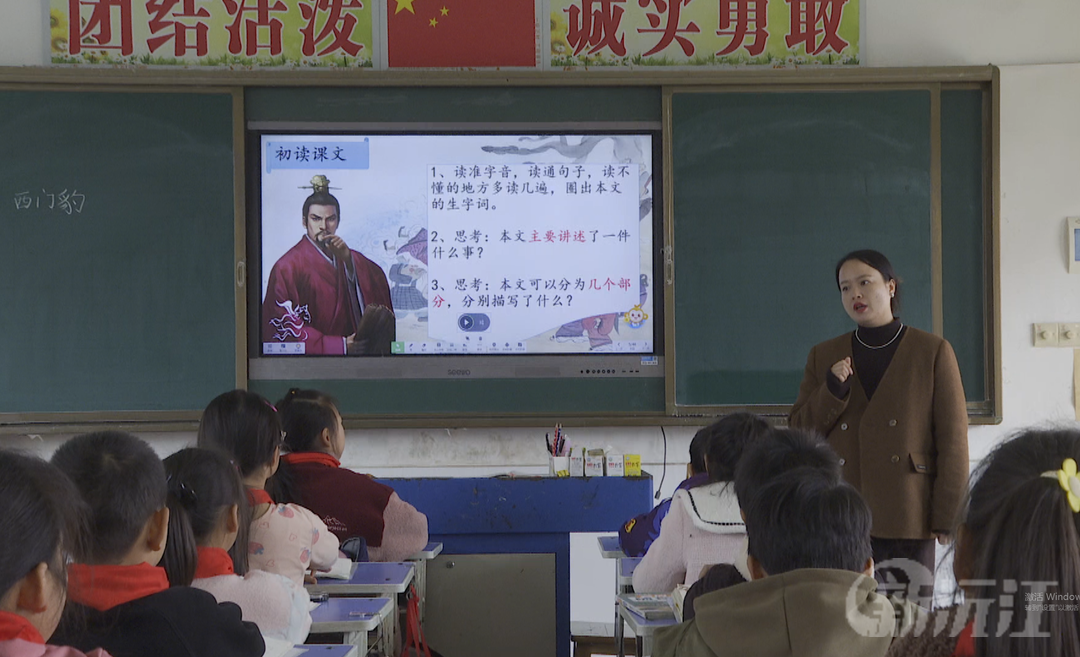 在共华镇中心小学四年级教室,一堂枯燥的语文课被周雅芬讲得极富感染力,得到了孩子们热烈回应,一个个高举的小手表达出孩子们对这个课堂的无限喜爱。