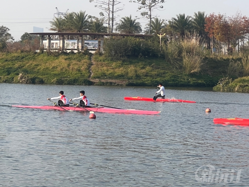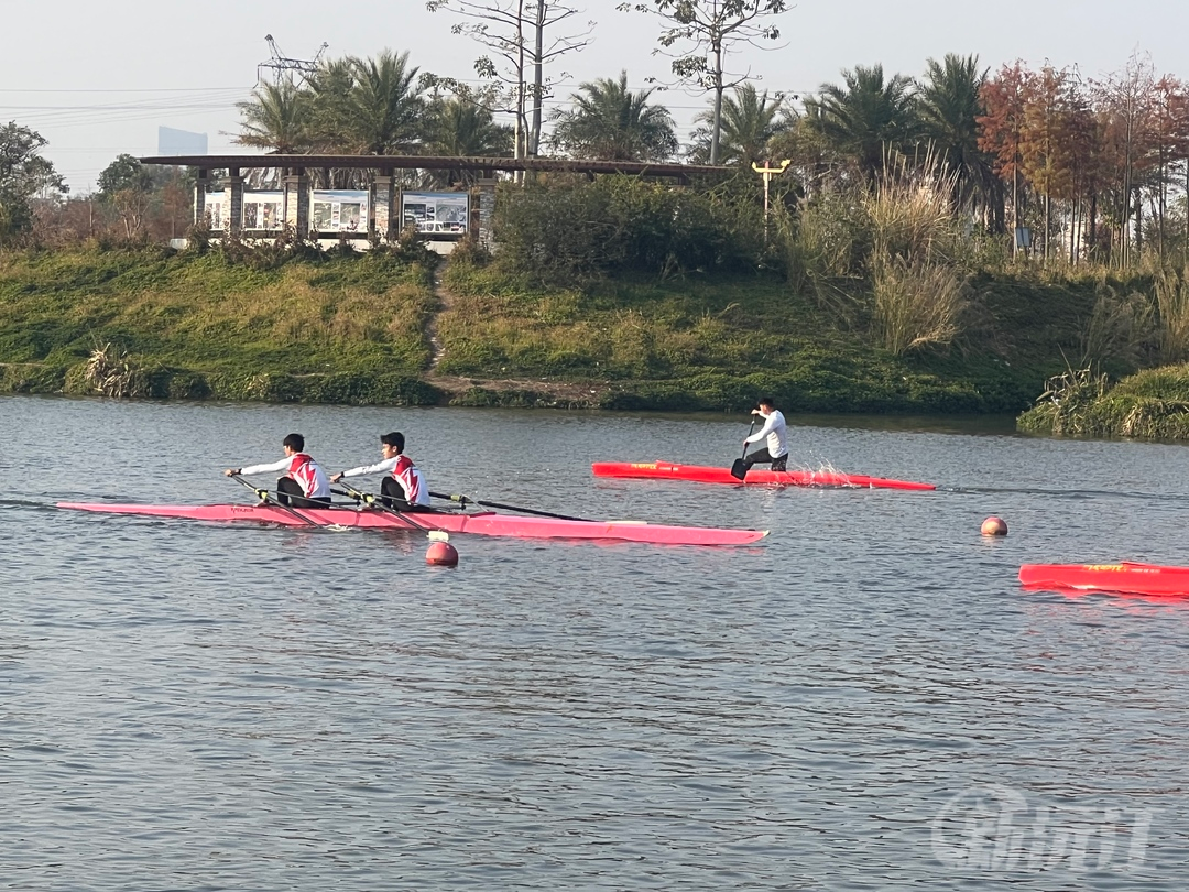而在千里之外,赛艇、皮划艇运动员集聚在汕尾市水上运动训练基地,在充分的训前准备活动后,依次下水进行每天3小时一轮的水上专项训练,训练行程近30公里。上午体能训练、下午水上划艇,每人每天至少7小时的训练。赛艇教练李正道以队为家,全身心扑在训练上,每天琢磨的都是如何让队员们快速成长。
