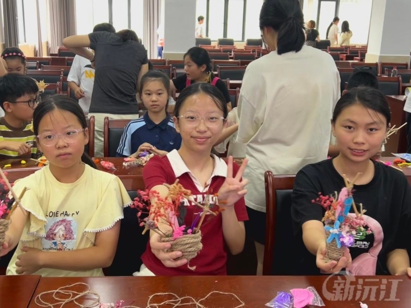 在手工课上,同学们利用芦苇、麻绳、木棍等材料,在志愿者指导下制作“环保花篮”“环保挂饰”等创意作品,同时开展芦苇套圈大挑战等游戏。现场气氛活跃、学生们热情高涨。通过将自然材料与艺术创作结合,传递了“变废为宝”的环保理念,强化了学生对湿地生态系统价值的认知。