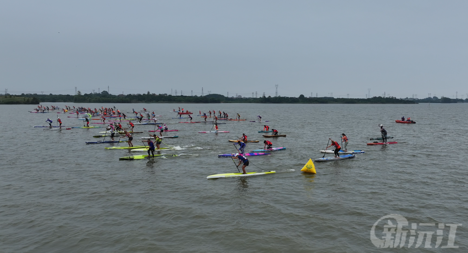 上午9时许,随着开赛笛声划破长空,大众组男、女组的比赛精彩上演。运动员们齐齐发力,一叶叶色彩斑斓的桨板划破湖面,犹如离弦之箭,奔向胜利的终点。