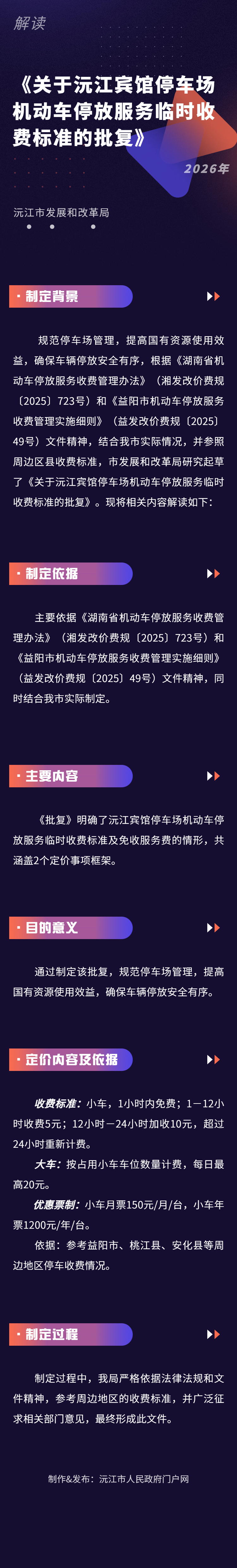 【H5】关于《关于沅江宾馆停车场机动车停放服务临时收费标准的批复》的政策解读
