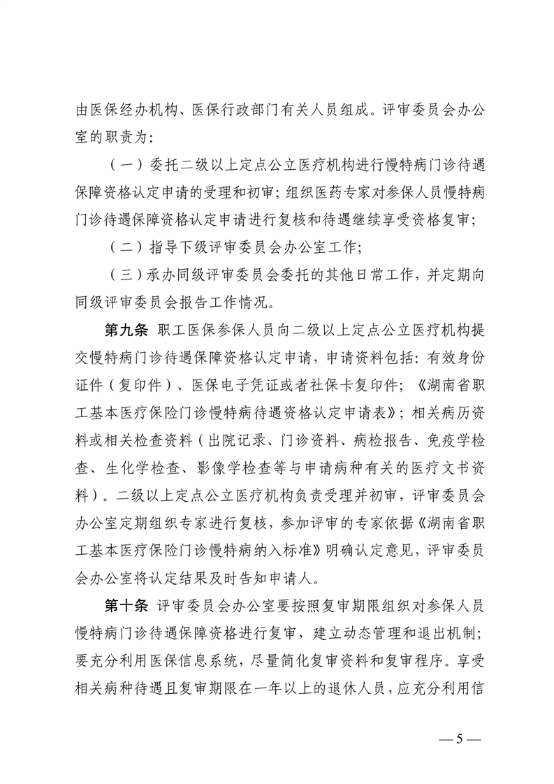 《湖南省职工基本医疗保险慢特病门诊待遇保障管理办法》