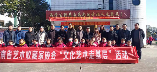 在随后的捐赠仪式上,省收藏家协会会员们将爱心助学款和御寒衣物送到了孩子们的手中,鼓励孩子们积极上进,自立自强,希望每一个孩子都能够健康快乐的成长,同时也向学校捐赠了若干艺术藏品。