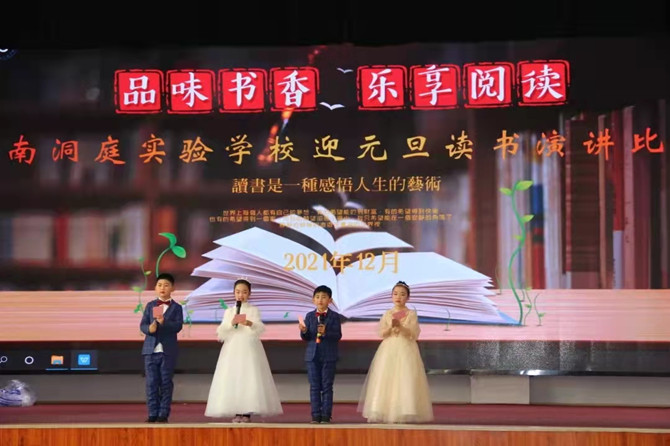 本网讯(通讯员 周志新 李晓娟)近日,南洞庭实验学校全校3600多名师生举行“品味书香,乐享阅读”为主题的读书演讲比赛,小小演说家声情并茂的精彩演讲深深打动与会师生,演讲现场高潮迭起,不时爆发阵阵掌声。