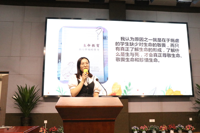 该校的新三年发展规划确定了研究和实践生命教育的战略思路。为贯彻这一办学思想,学校办公室于上学期末按照“政治思想+生命教育”的思路制定了切实可行的政治学习方案,并在暑假期间组织管理班子和各科教研成员深入研读《生命教育——朝向幸福的努力》一书及相关网络资料。班主任组、道德与法制组、语文组、体育组等八个学科教师代表结合习近平总书记七一讲话精神,分别作了课程生命教育方面的学习分享。教学副校长刘敏、德育副校长刘亮作了生命教育课程方面的指导性分享,学校办公室主任周志新在党史学习分享中“从党史出发,贯穿教育生活,回归生命情感。”。杨建新校长在总结发言中谈到:“教师要以生命影响学生生命,贯穿学校以爱育爱、以智启智的教育思想。”