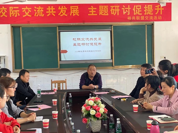 在下午联盟两校的交流活动中,教师们表达了在乡村教育中遇到的困惑,桔园学校校长匡卫兵就怎样抓好教学管理作了经验介绍,名师工作室专家潘绍春就教研工作作了指导。
