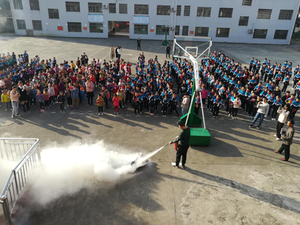 演练分“报警——撤离——灭火——讲座”四个步骤进行。11月9日上午8点30分,在警报声响起之后,各班教师组织学生迅速有序的撤离,“掩口鼻、弯下腰、有序跑”,每个楼道的老师发出坚定的口令,指挥着学生撤离,整个撤离时间是1分40秒。随后,安全员刘少武老师演示了如何正确使用灭火器,学校主管安全副校长熊牛生就灭火器的使用、逃生技能等做了一次详细的讲座。