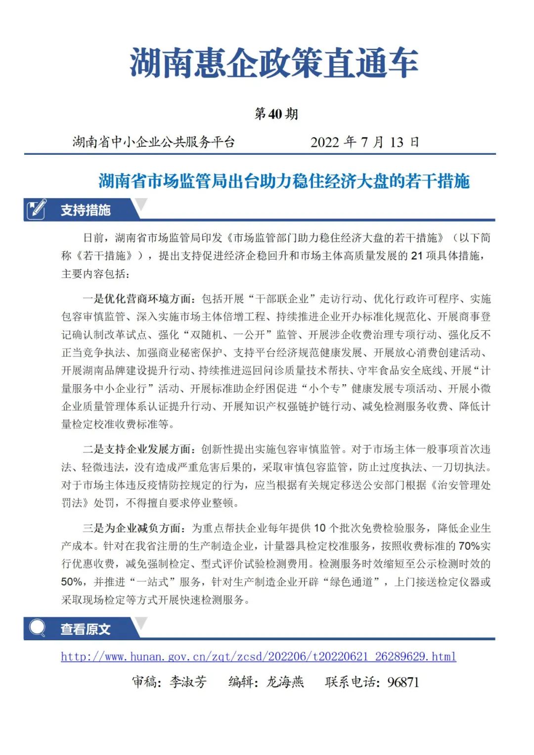 湖南省市场监管局出台助力稳住经济大盘的若干措施