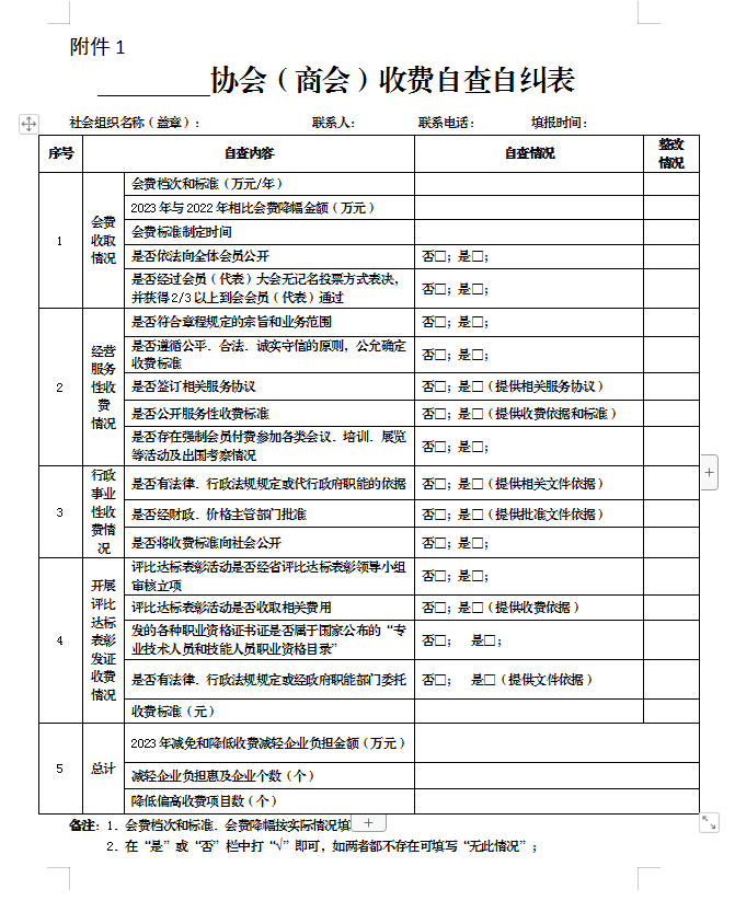 附件: 1.协会(商会)收费自查自纠表