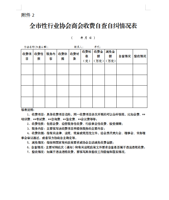 2.全市性行业协会商会收费自查自纠情况表