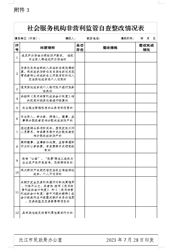 3.社会服务机构非营利监管自查整改情况表