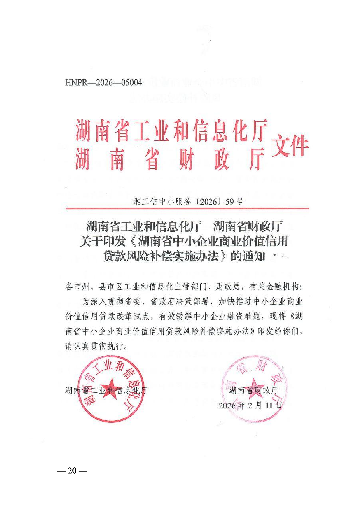 4、湖南省工业和信息化厅 湖南省财政厅关于印发《湖南省中小企业商业价值信用贷款风险补偿实施办法》的通知 30