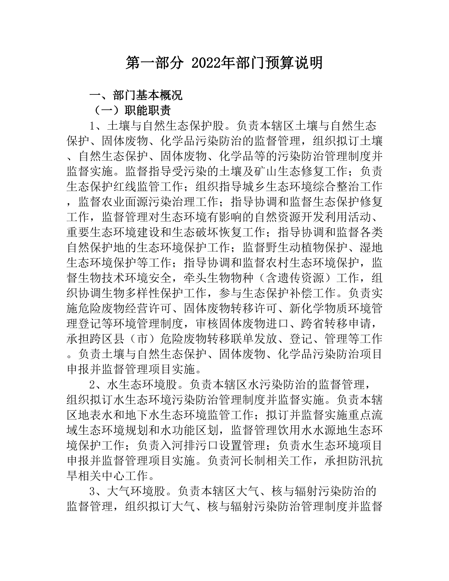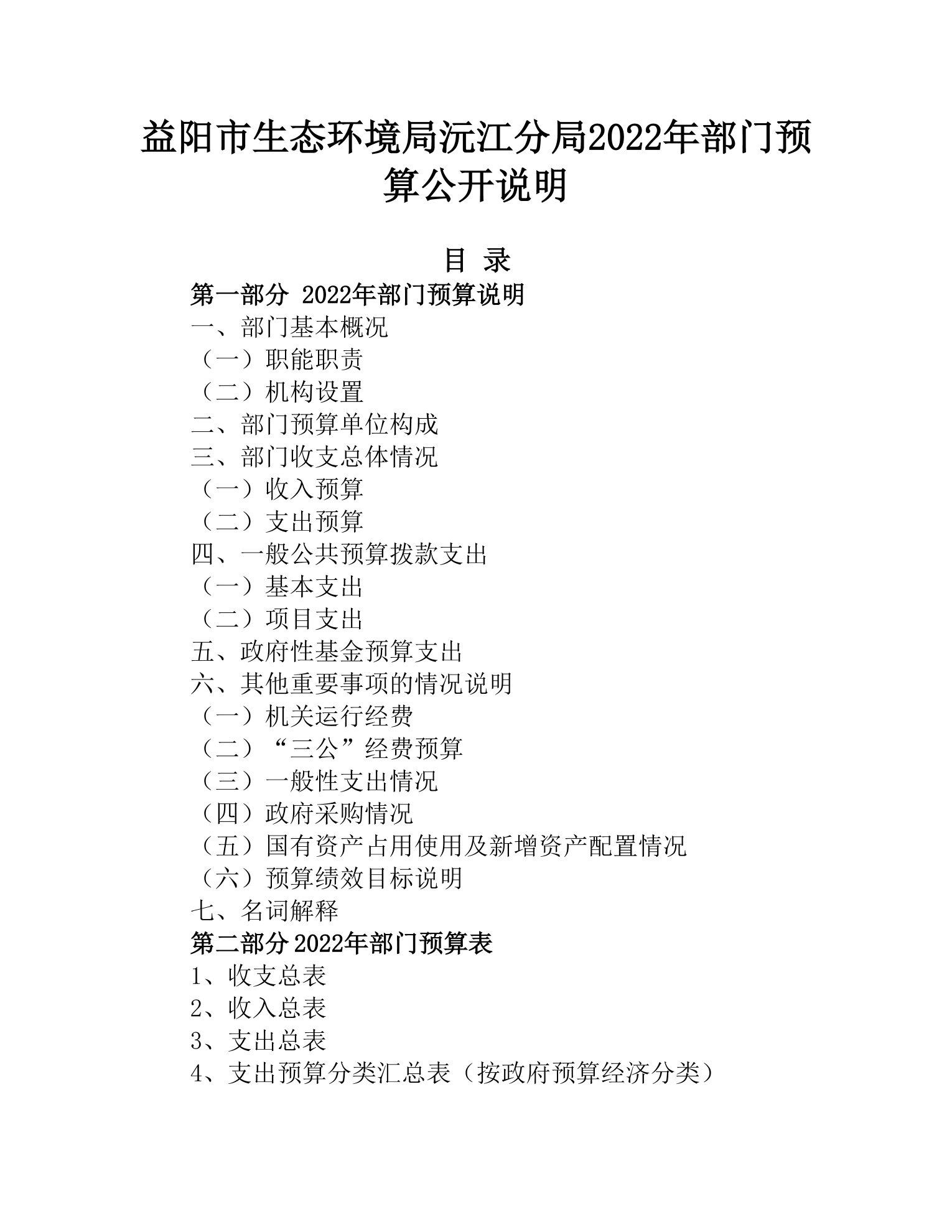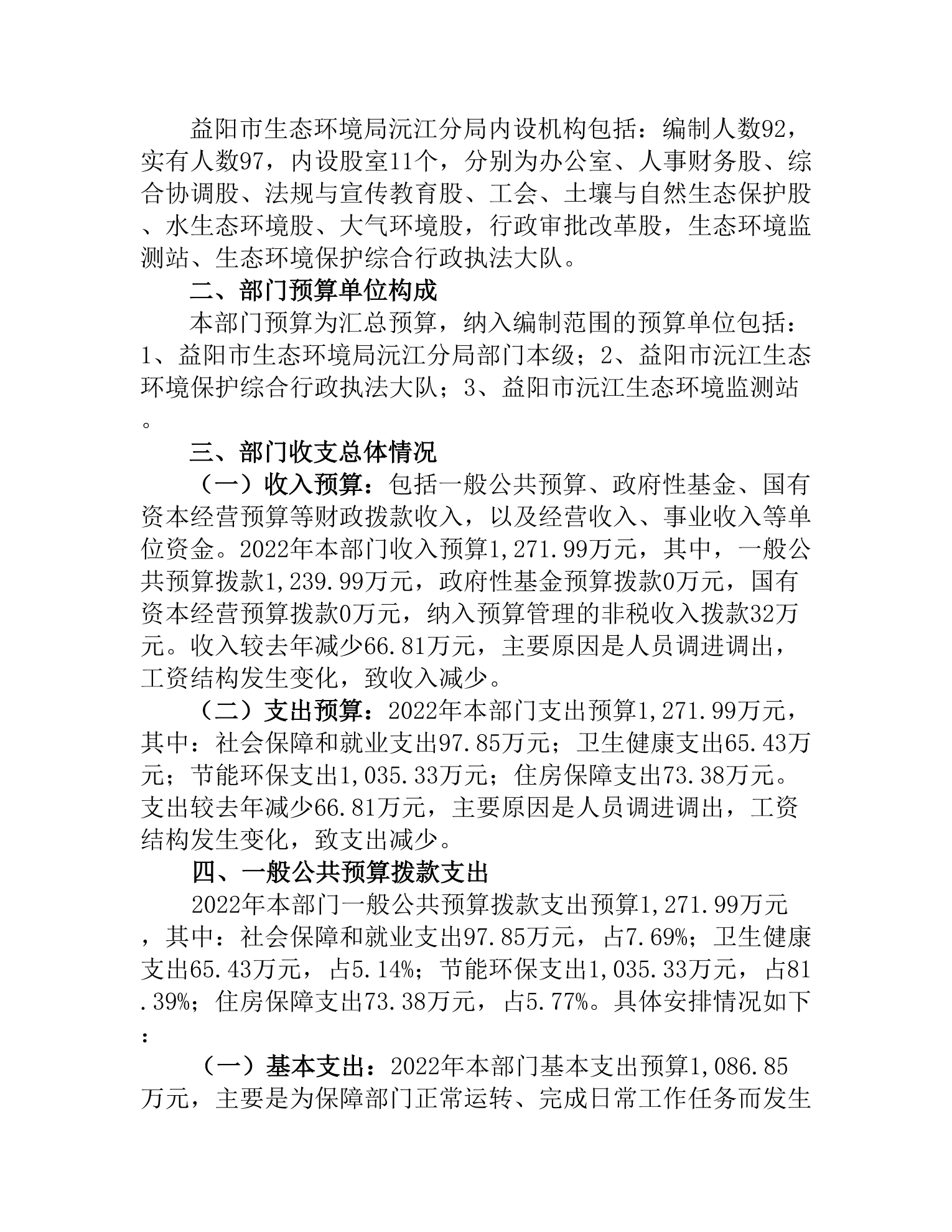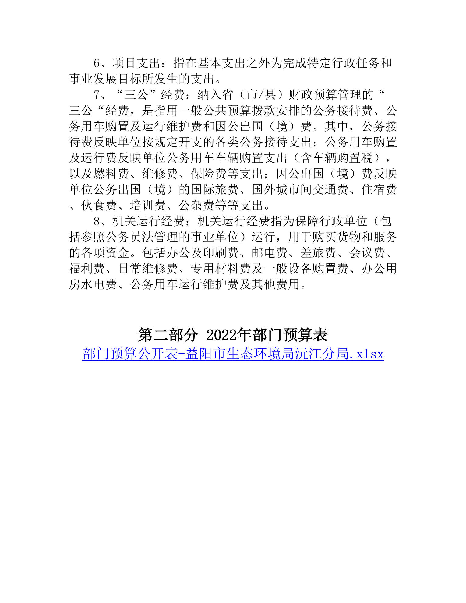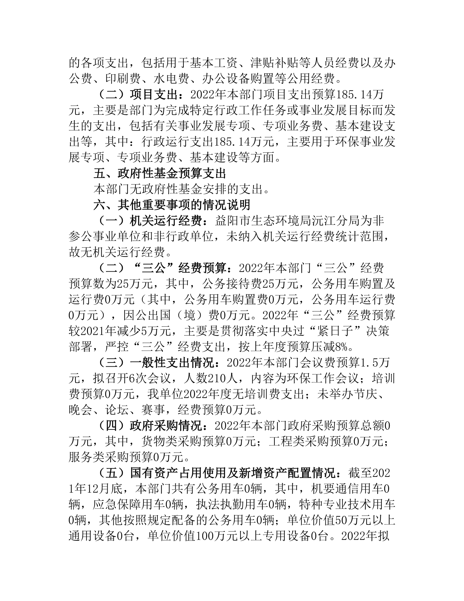 益阳市生态环境局沅江分局2022年部门预算公开说明