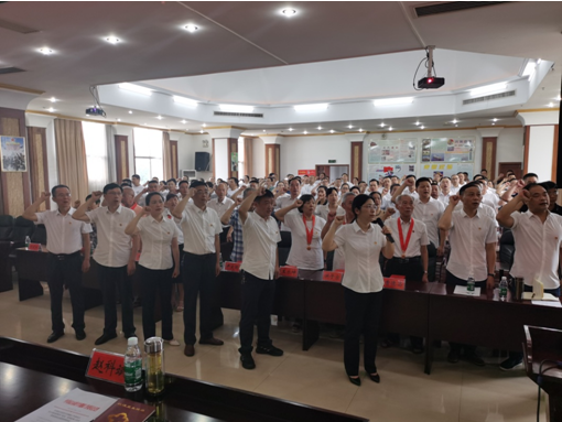 颁授仪式上,参会人员全体起立奏唱《国歌》;局班子成员为8名“光荣在党50年”党员代表佩戴纪念章并合影留念;同时,由郭云同志领读,全体参会人员面对党旗高举右手,重温入党誓词。颁奖现场,郭云同志表示我们在传递共产党对老党员的关心、爱护与牵挂的同时,希望全系统党员干部从纪念章的“荣光”里体悟老党员的敬业精神,让红色基因、革命薪火代代相传。老党员们纷纷表示,将继续发挥余热,永远感恩党、跟党走。