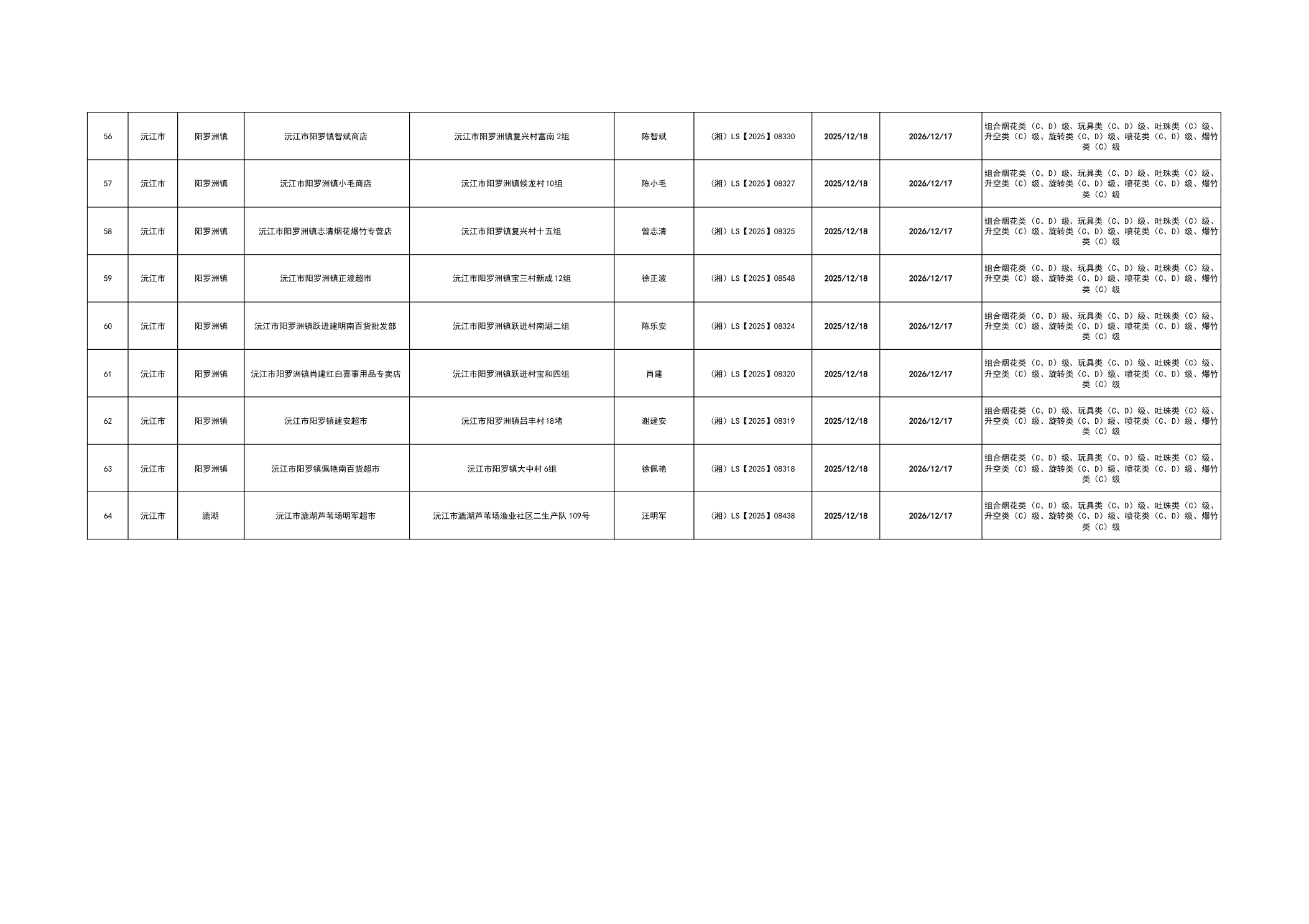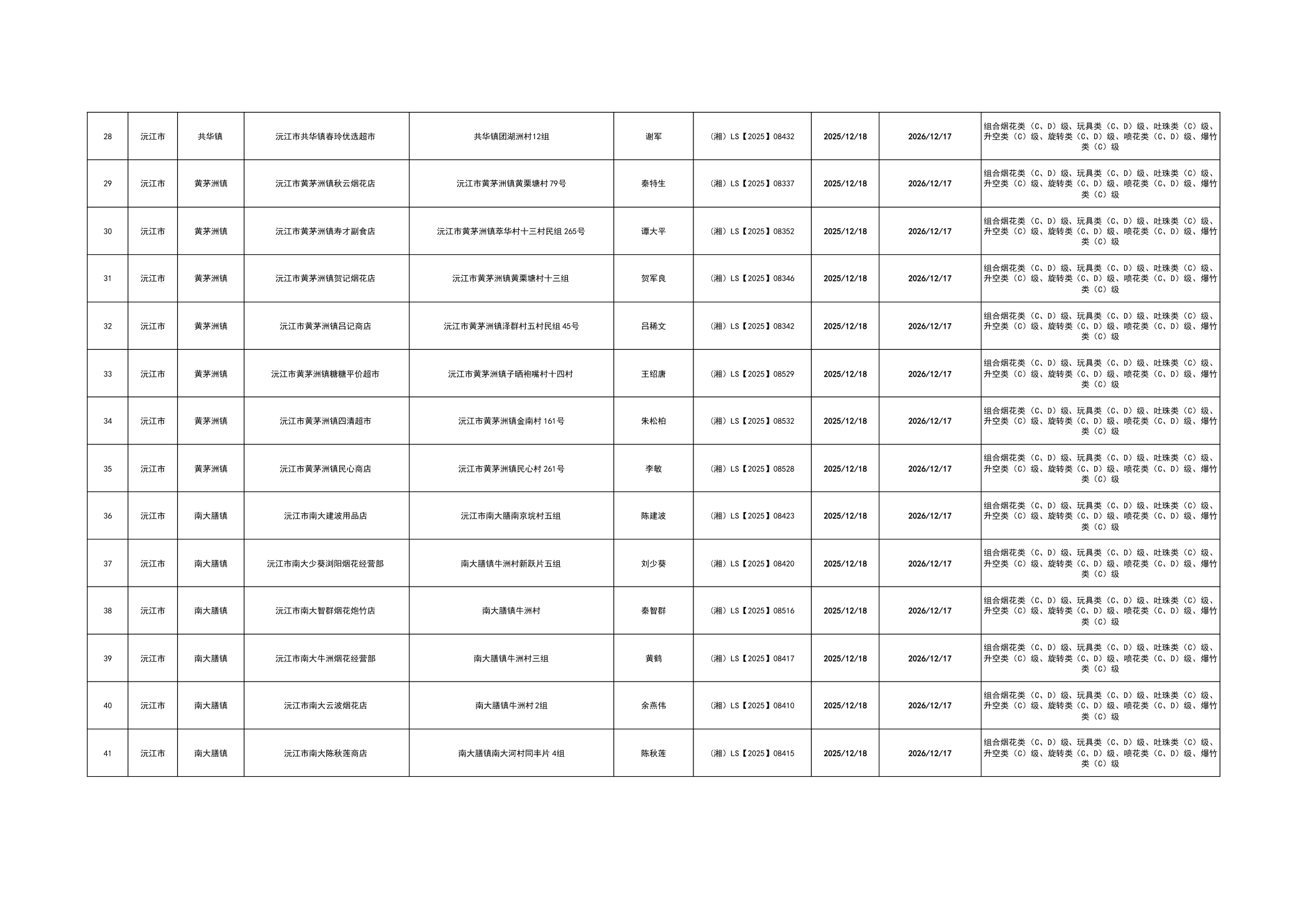 沅江市烟花爆竹经营许可证核发情况公告