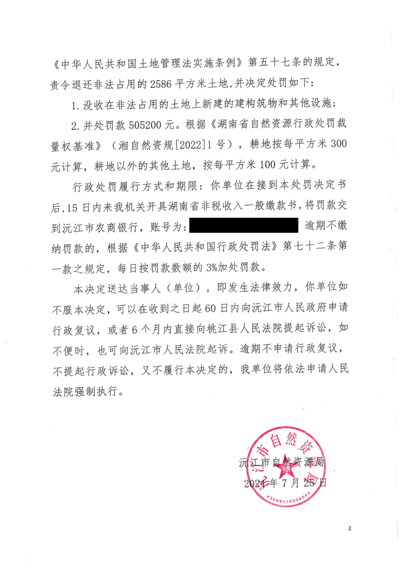 20240725沅琼自然资罚〔2024〕2号行政处罚决定书