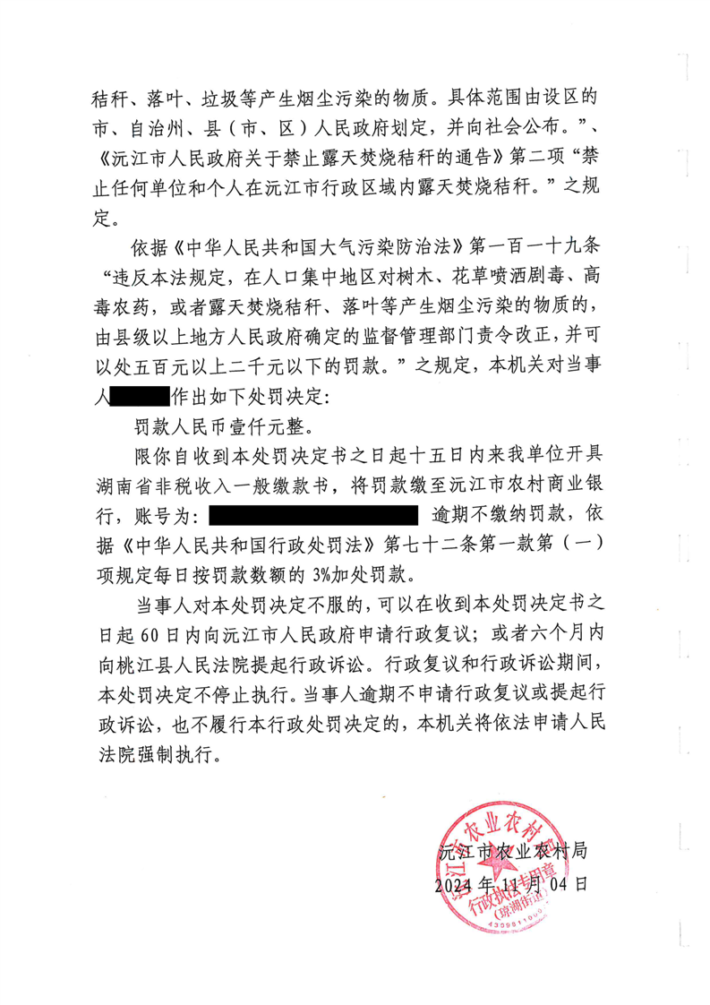 沅琼执(农)罚〔2024〕3号行政处罚决定书