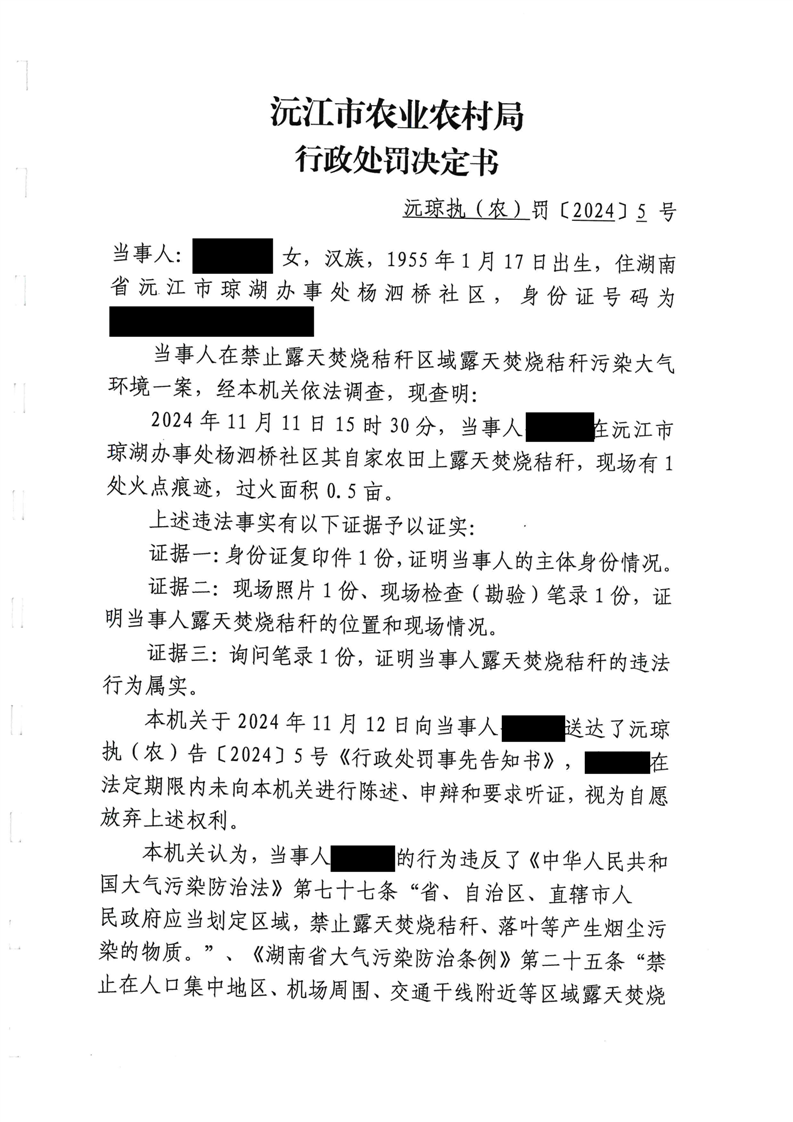 沅琼执(农)罚〔2024〕5号行政处罚决定书