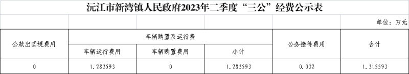 沅江市新湾镇人民政府2023年二季度“三公”经费公示表
