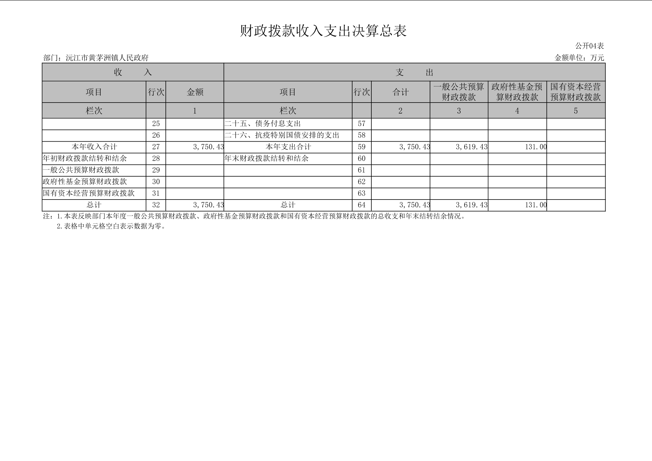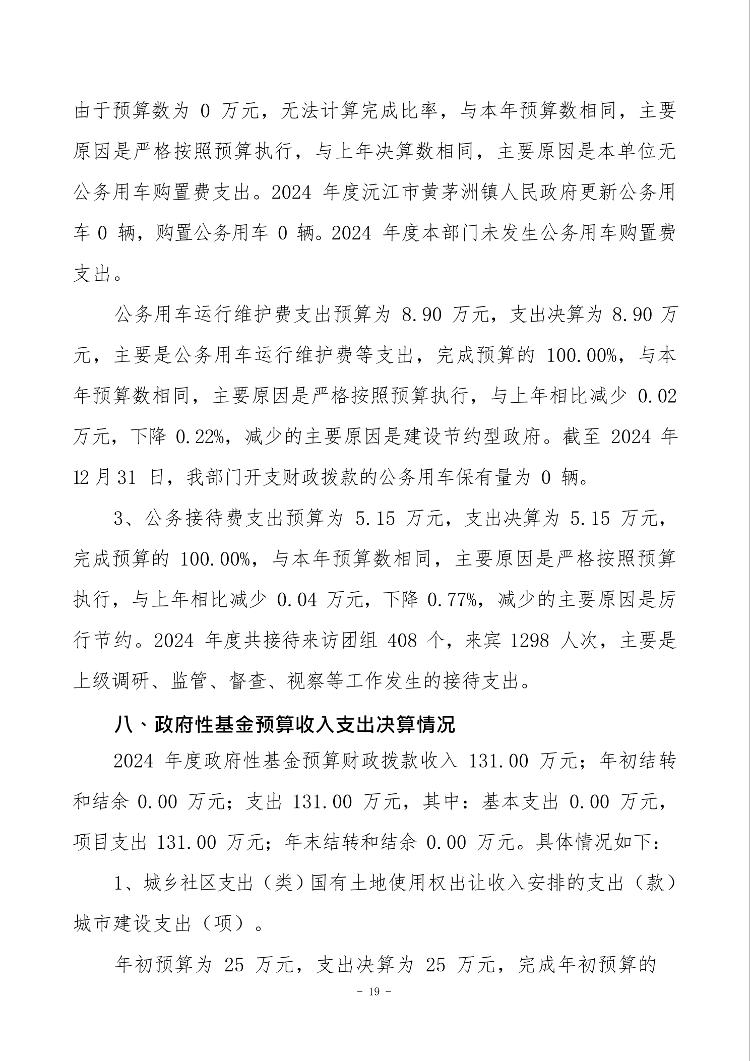 2024年度沅江市黄茅洲镇人民政府 部门决算