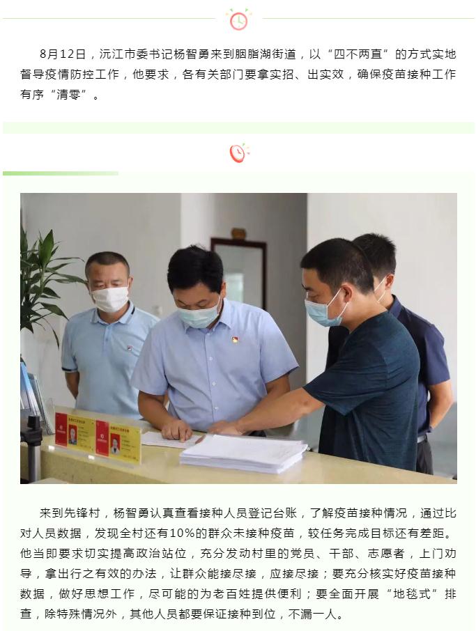 杨智勇:拿实招 出实效 确保疫苗接种有序“清零”