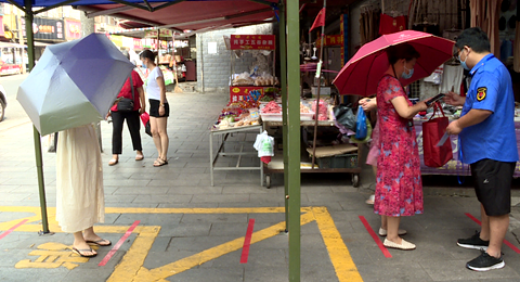 市商务局市场服务中心主任陈新伟表示:“我们商务局在全市农贸市场都设立了防控点,严查市民‘三码’,发现体温异常者,黄码、红码者,会迅速联系社区相关工作人员,将其移送到检查点。在此我们呼吁广大市民,出门购物时一定要佩戴好口罩,配合工作人员进行‘三码’联查,为自身和他人的安全着想。”