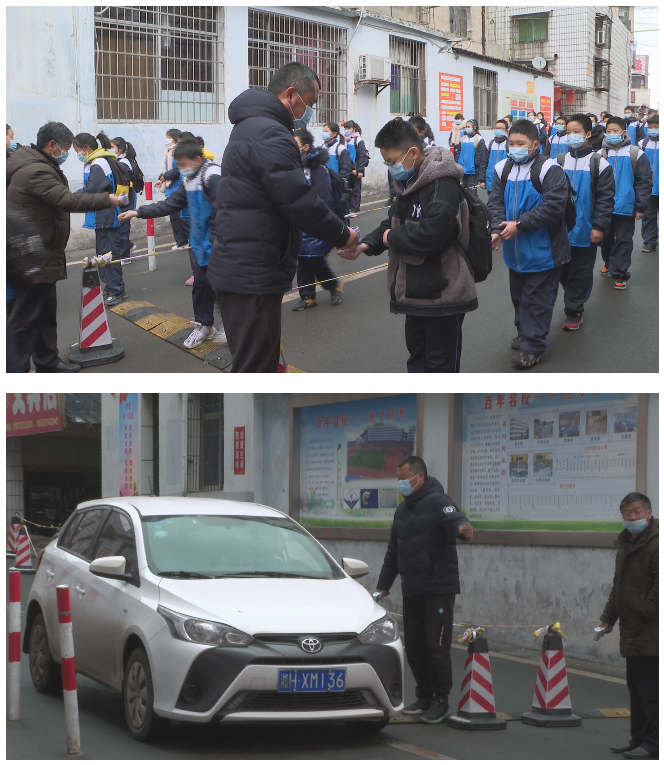 在琼湖中学门口,以前的入校通道变成了四条分流通道,其中师生通道为三个,还有一条为应急通道,不同年级的学生正在保持间距有序入校。大门入口处,几名老师正在逐一细致地对进校人员和车辆进行体温检测和登记工作,严格控制人员的进出。