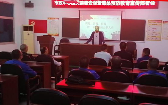 9月28日,沅江市政工程事务中心举行干职工禁毒宣传教育活动。这次活动旨在进一步提高干职工认识毒品的危害性、做到坚决抵制毒品的侵害,让大家时刻绷紧禁毒这根弘。