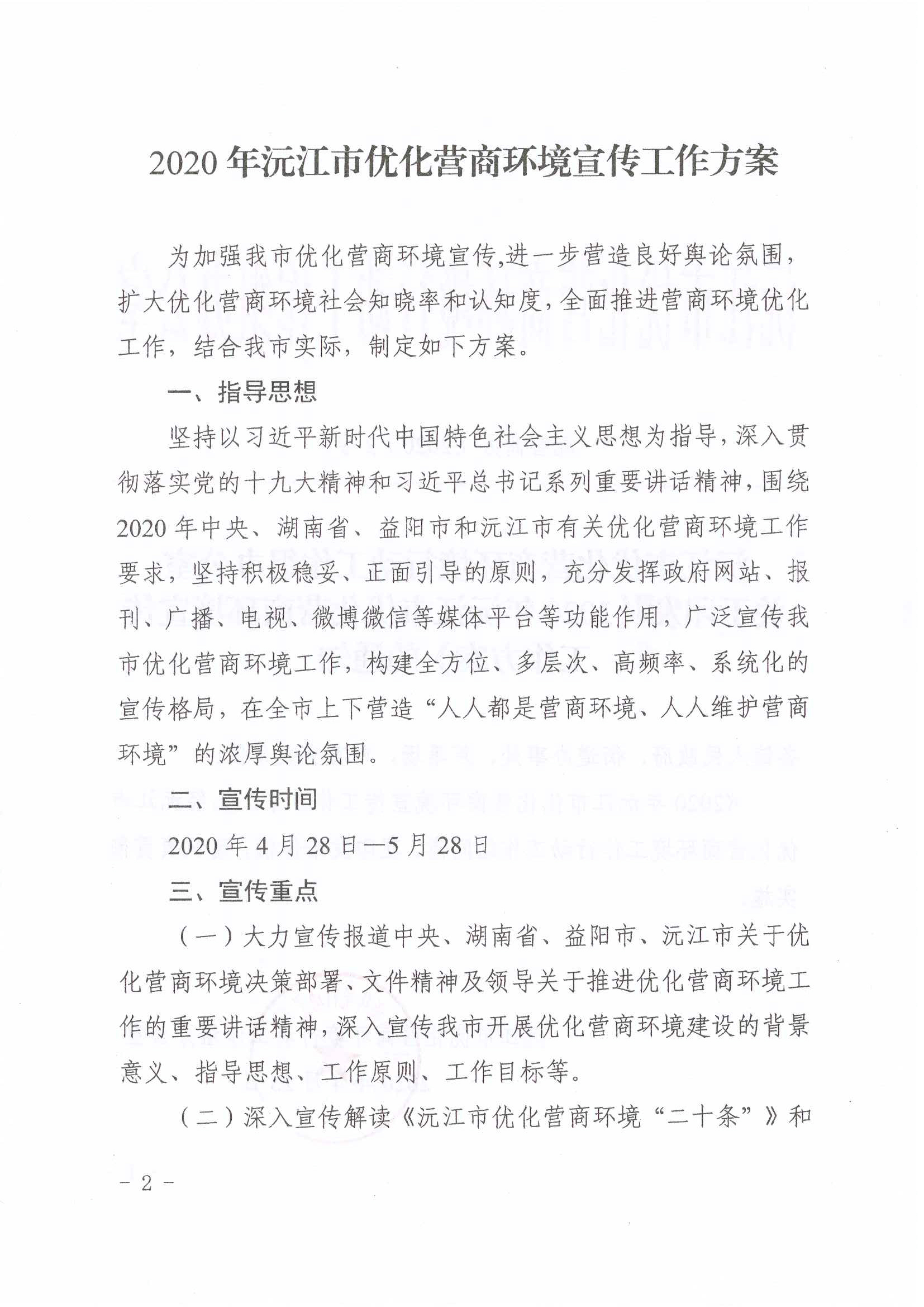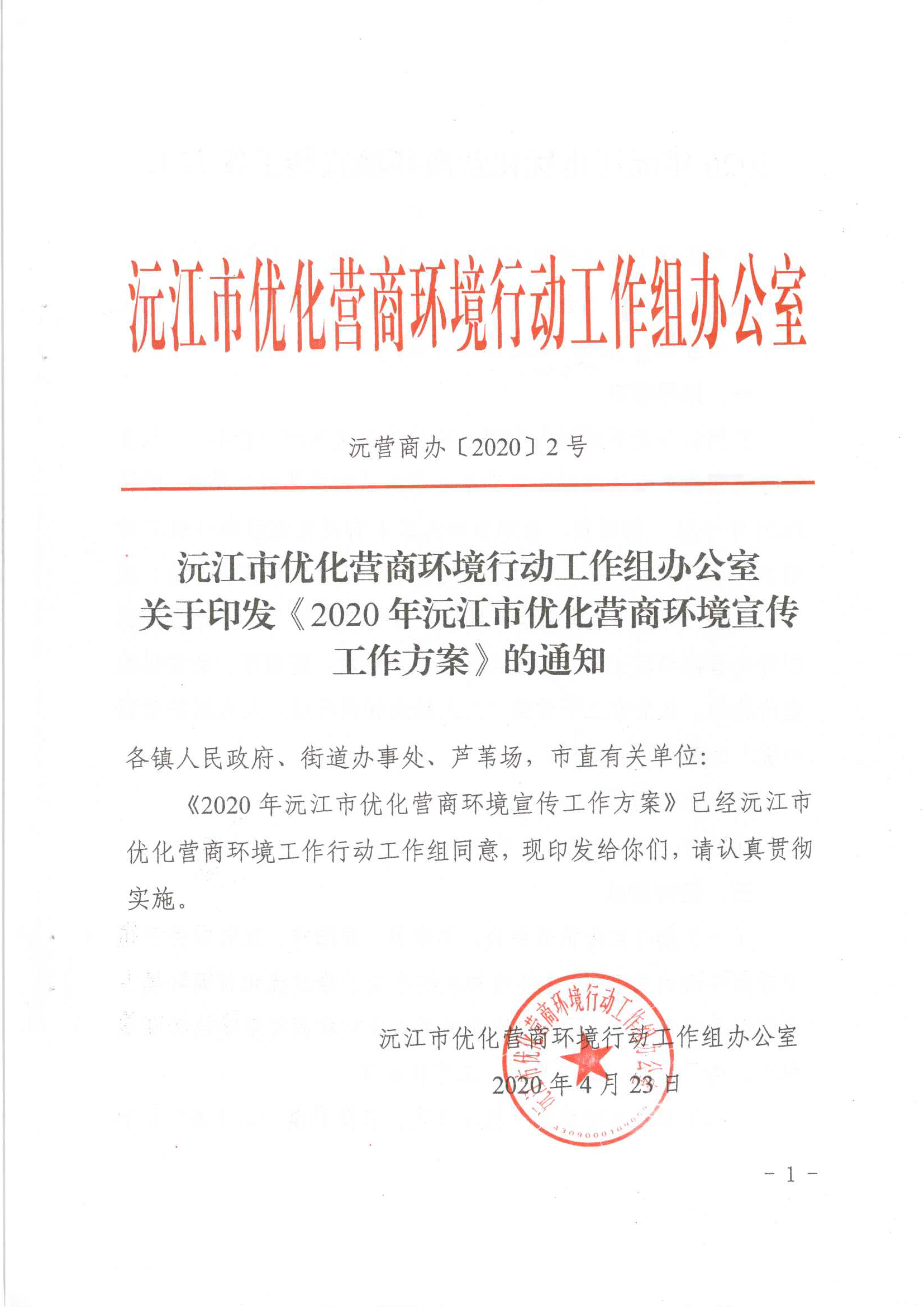 沅江市优化营商环境行动工作组办公室关于印发《2020年沅江市优化营商环境宣传工作方案》的通知
