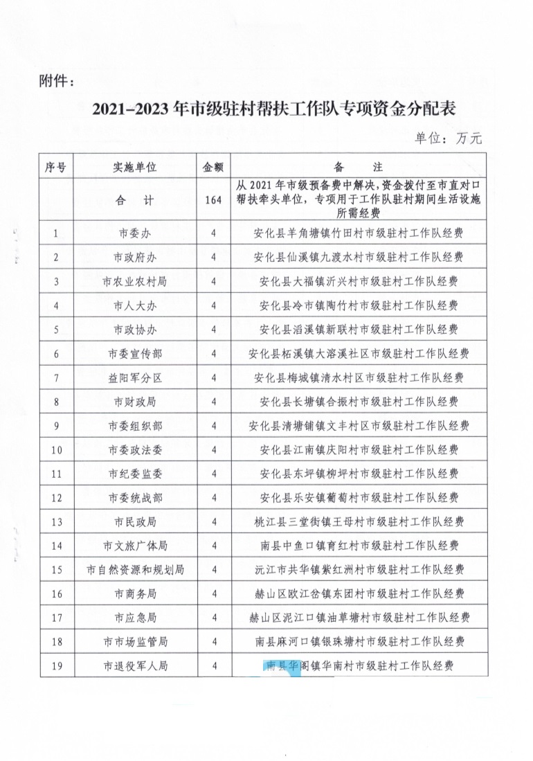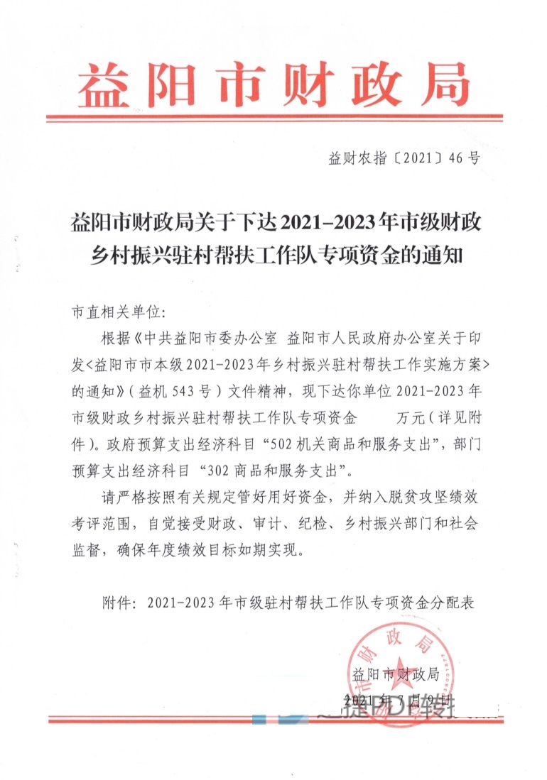 关于下达2021-2023年市级财政乡村振兴驻村帮扶工作队专项资金的通知(益财农指〔2021〕46号)