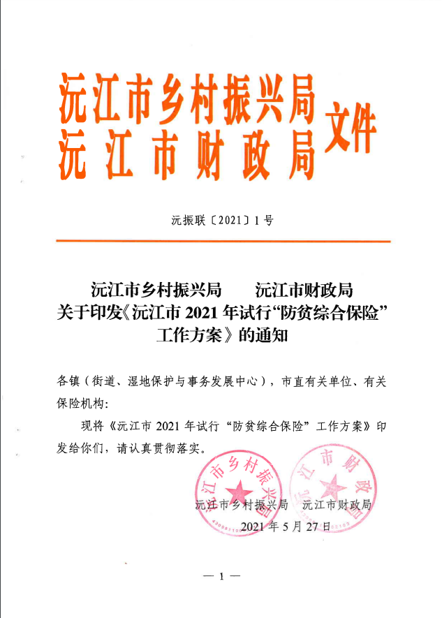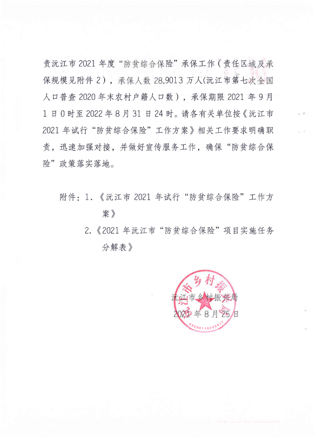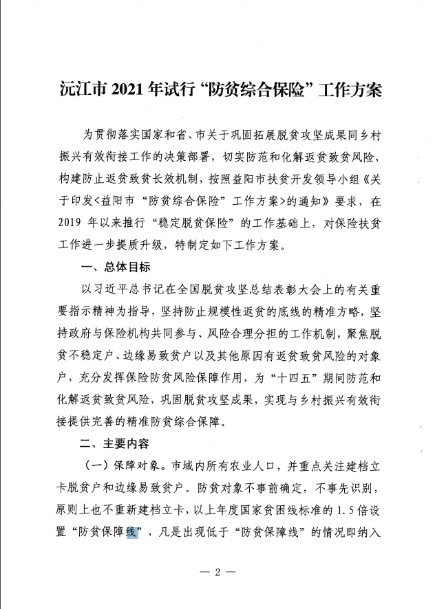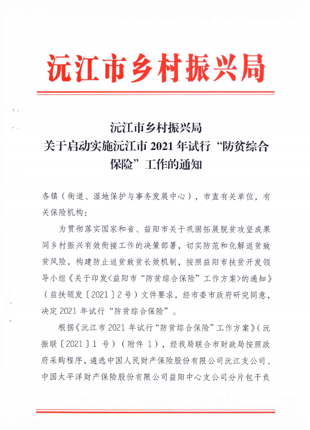 关于启动实施沅江市2021年试行“防贫综合保险”工作的通知