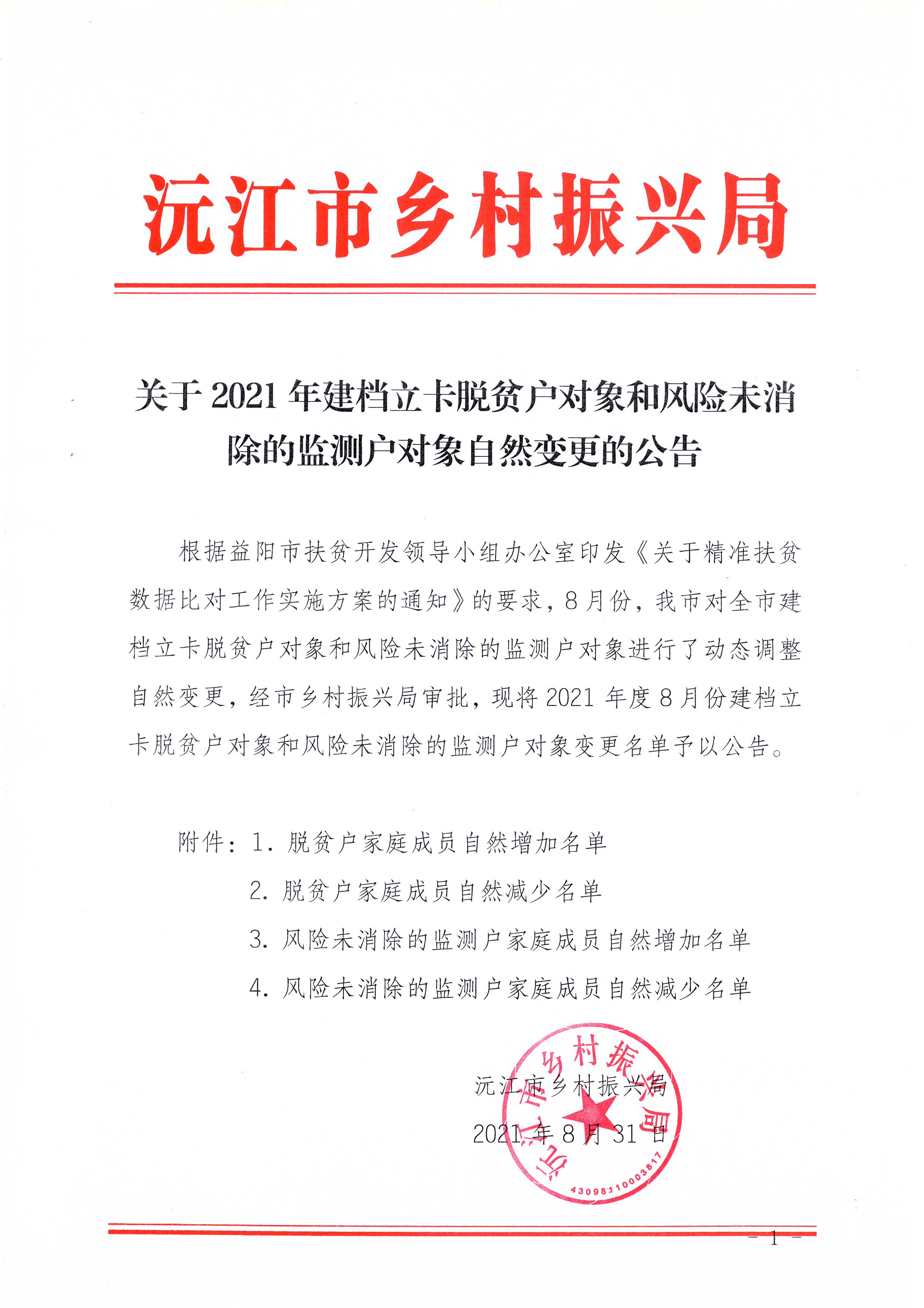 关于2021年建档立卡脱贫户对象和风险未消除的监测户对象自然变更的公告