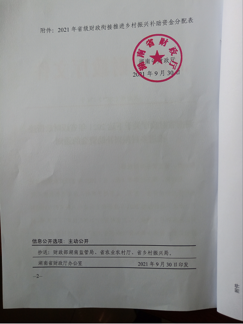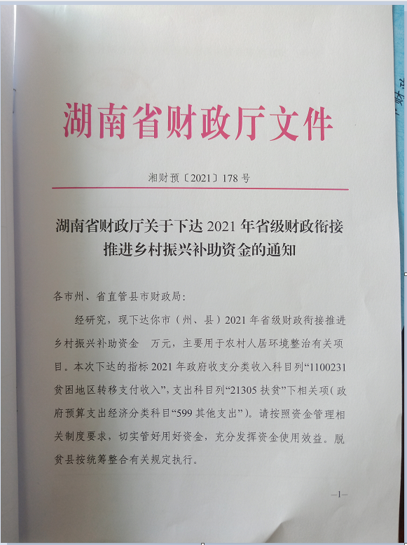 关于下达2021年省级财政衔接推进乡村振兴补助资金的通知(湘财预〔2021〕178号 )