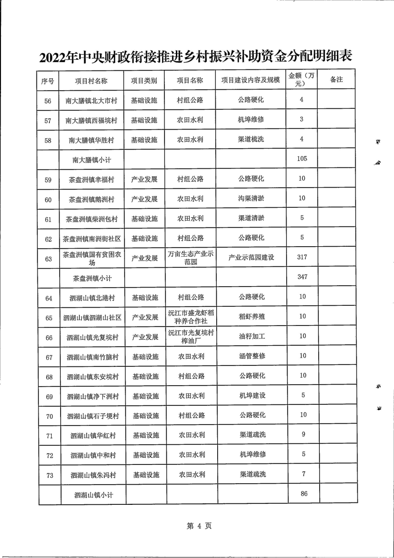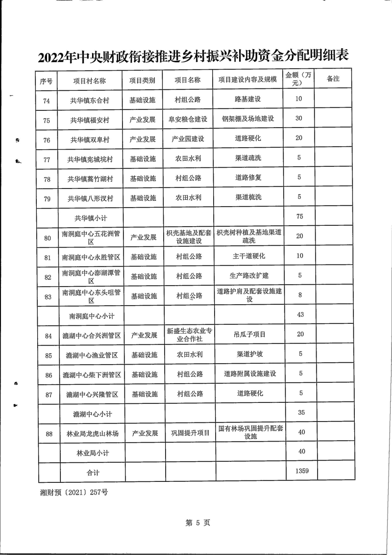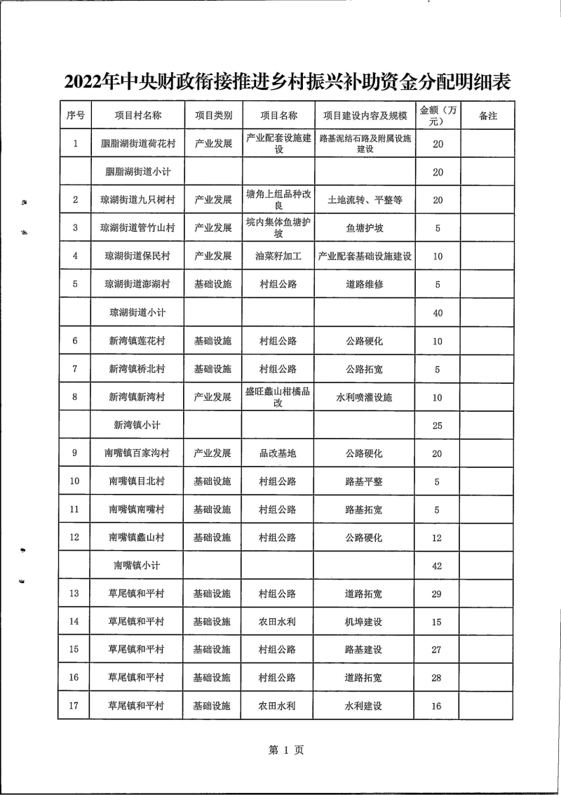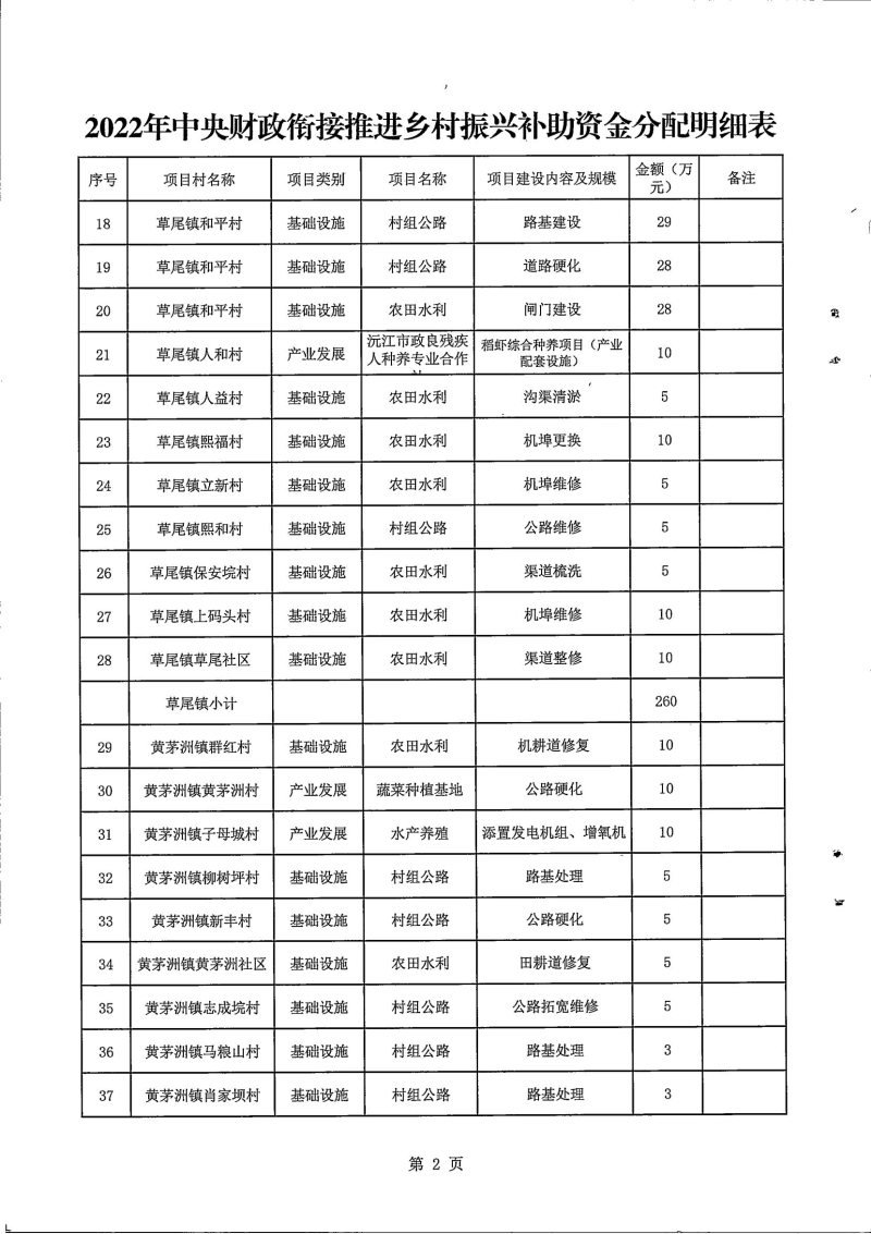 沅财农指〔2022〕2号关于下达2022年中央财政衔接推进乡村振兴补助资金的通知