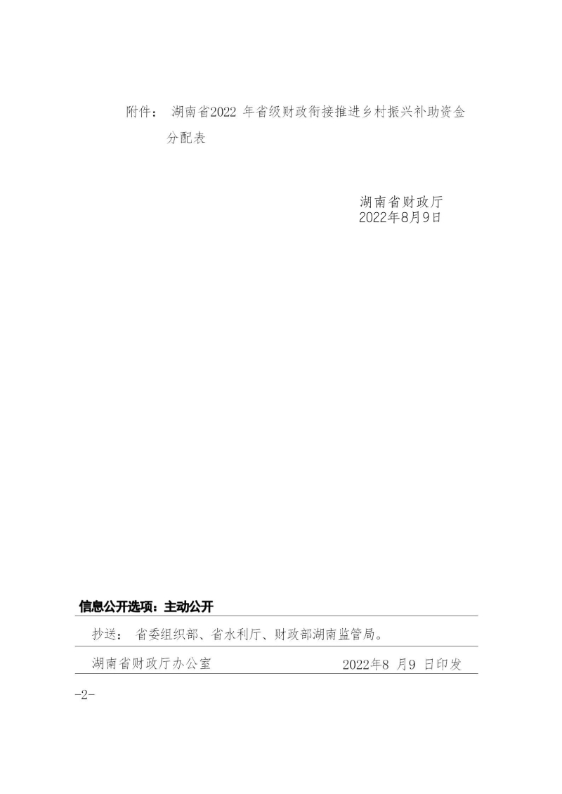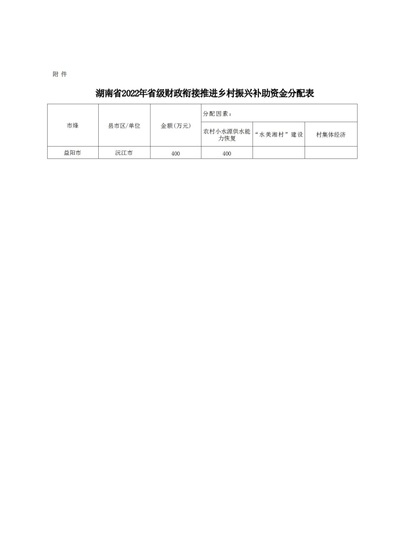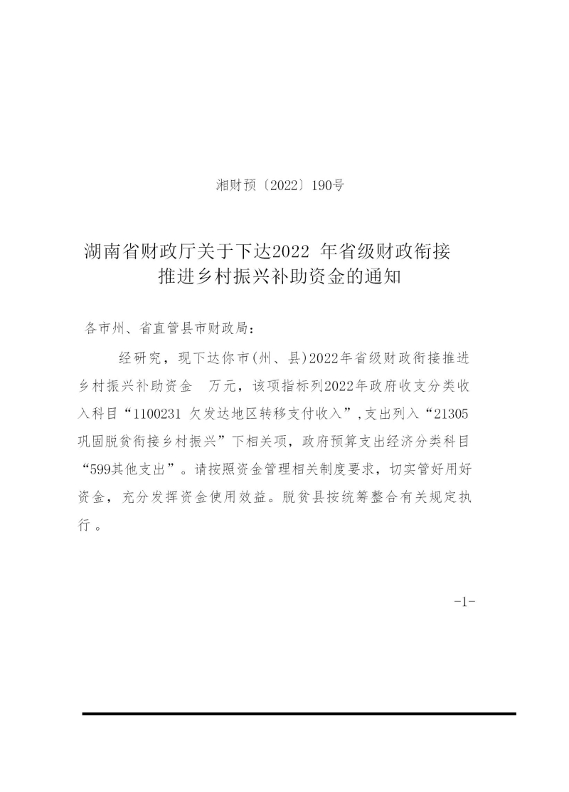 湘财预〔2022〕190号 关于下达2022年省级财政衔接推进乡村振兴补助资金的通知