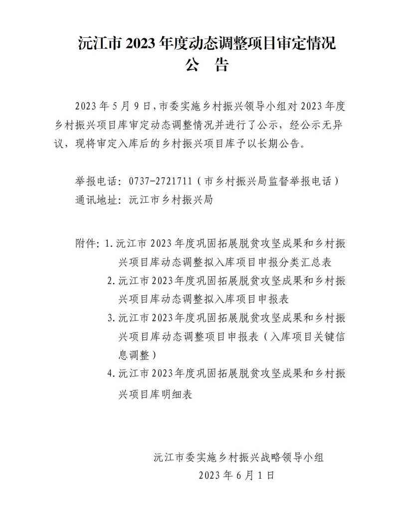 1.沅江市2023年度巩固拓展脱贫攻坚成果和乡村振兴项目库动态调整拟入库项目申报分类汇总表.xlsx 2.沅江市2023年度巩固拓展脱贫攻坚成果和乡村振兴项目库动态调整拟入库项目申报表.xlsx 3.沅江市2023年度巩固拓展脱贫攻坚成果和乡村振兴项目库动态调整项目申报表(入库项目关键信息调整).xlsx 4.沅江市2023年度巩固拓展脱贫攻坚成果和乡村振兴项目库明细表.xlsx