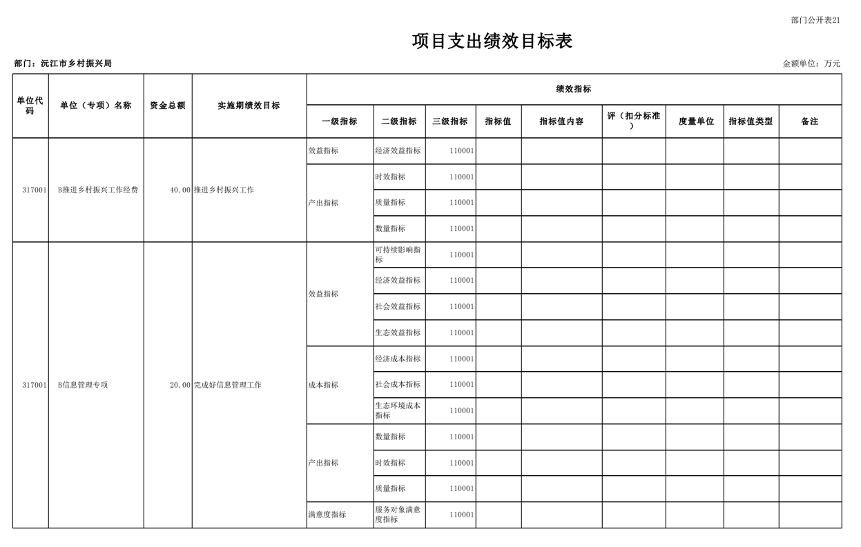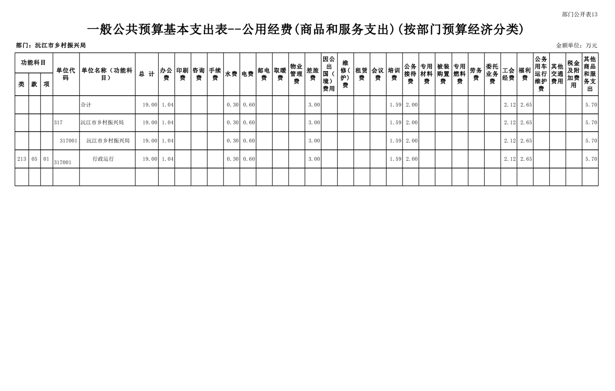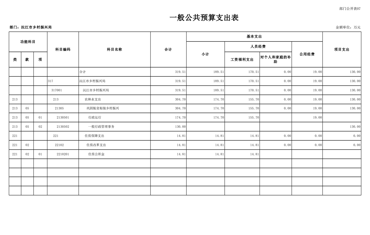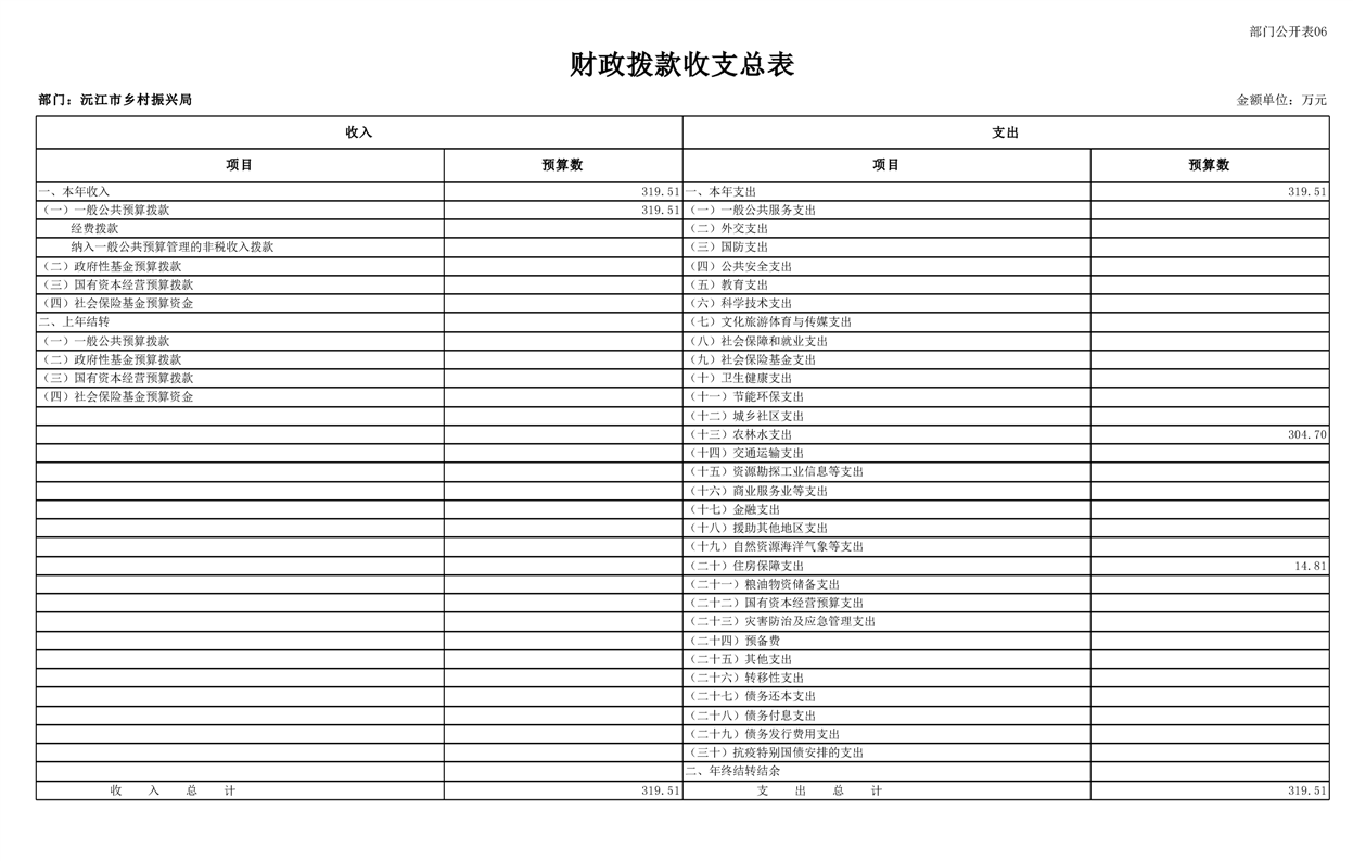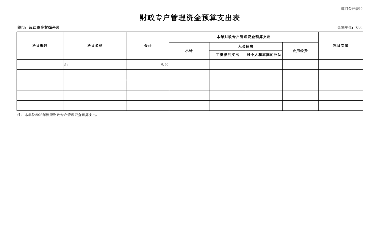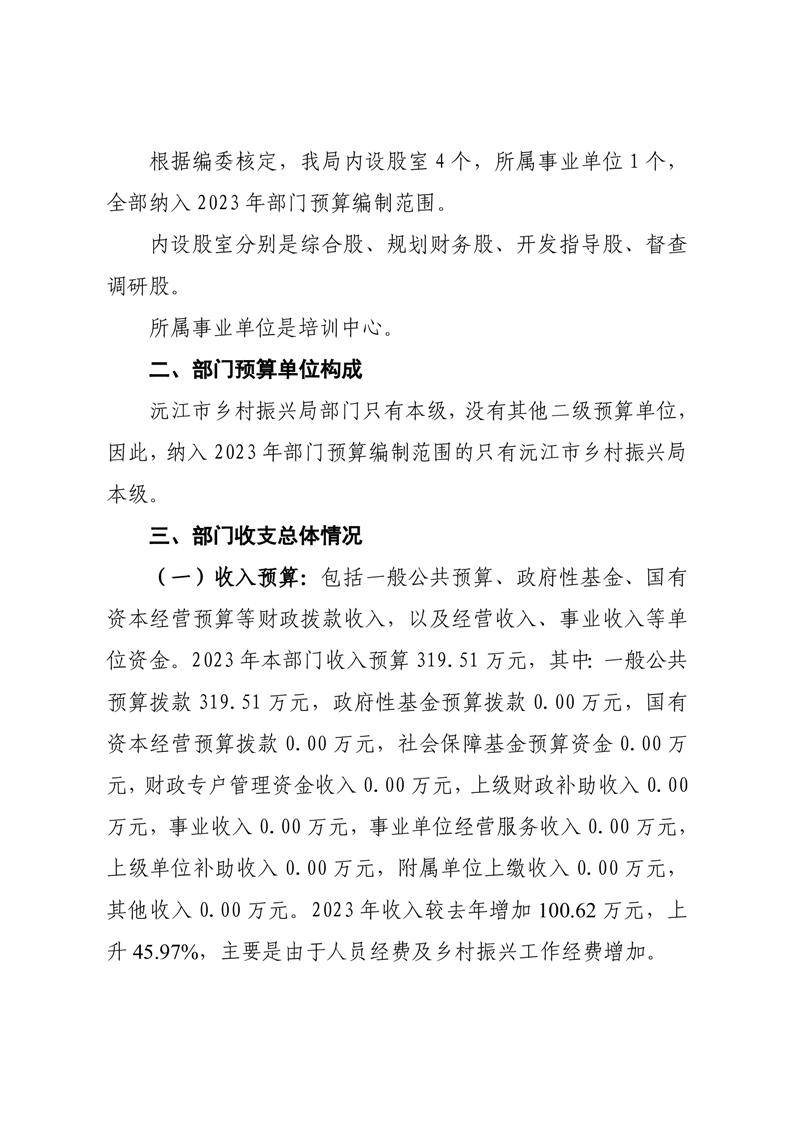 2023年沅江市乡村振兴局部门预算公开
