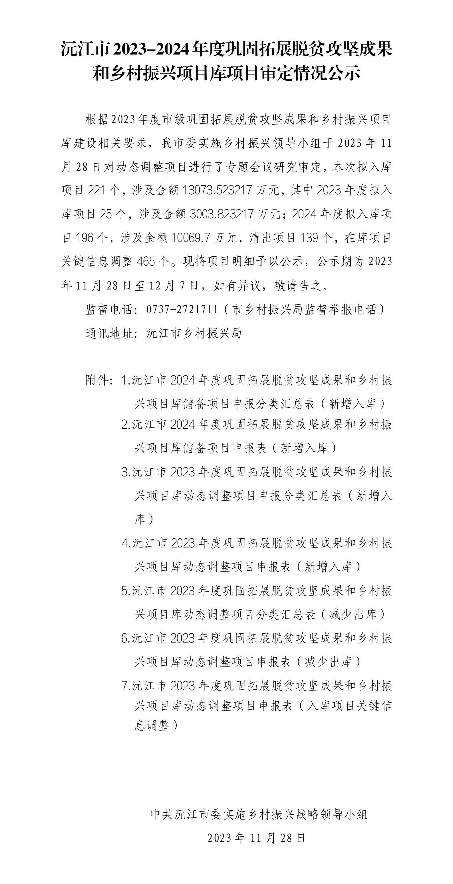 3.沅江市2023年度巩固拓展脱贫攻坚成果和乡村振兴项目库动态调整项目申报分类汇总表(新增入库).xlsx