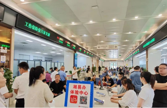 工作人员在“湘易办”体验中心帮助群众查询、办理业务