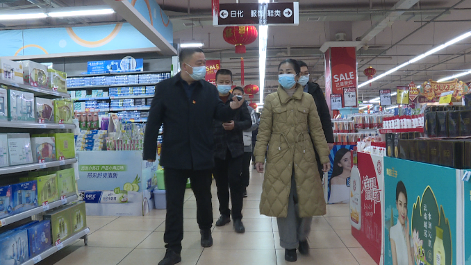 在好润佳超市,检查组详细查看了超市经营秩序、消防安全和疫情防控等情况并指出,春节来临,人流量增多,超市门店要规范经营秩序,严密排查风险隐患,杜绝食品安全事故的发生,同时要做好疫情防控常态化工作。