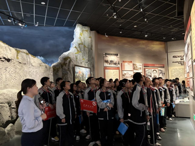 在讲解员带领下,同学们首先走进毛泽东生平展区。从“少年立志”到“井冈星火”,从“长征壮歌”到“开国大典”,一段段翔实史料、一幅幅珍贵照片,勾勒出伟人波澜壮阔的一生。77本毛泽东主要著作整齐摆放的陈列墙,以及“神舟十号”返回舱实物,更让大家直观感受到毛泽东同志带领下中国共产党“敢教日月换新天”的豪迈气魄。