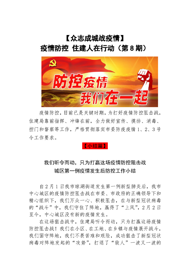 【众志成城战疫情】病毒防控 住建人在行动(第八期简报)