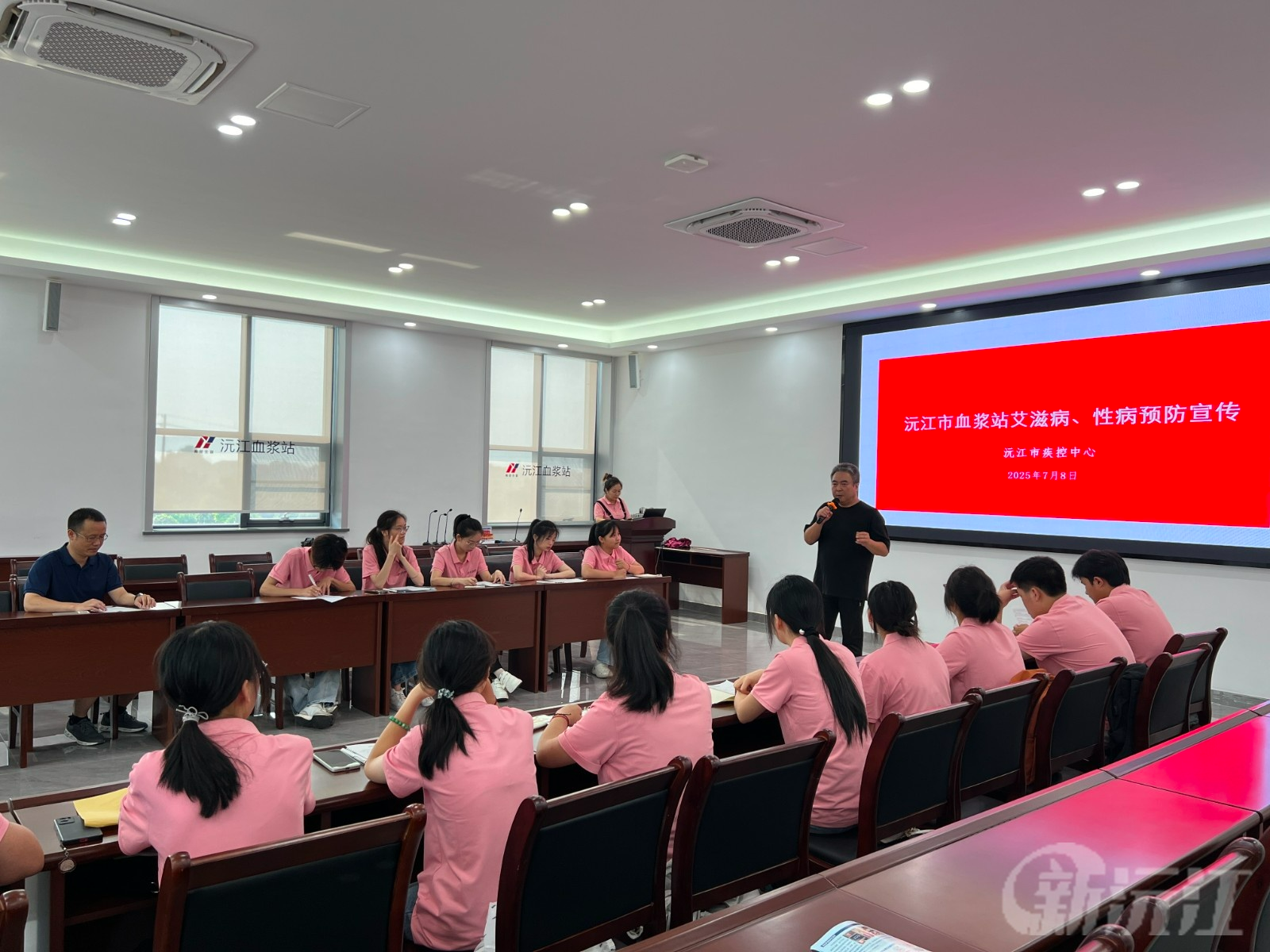 7月8日,沅江市疾控中心携手市南岳生物单采血浆站,面向大学生开展艾滋病防治知识培训,丰富他们的暑期社会实践,为其送上一份实用的“防艾指南”。
