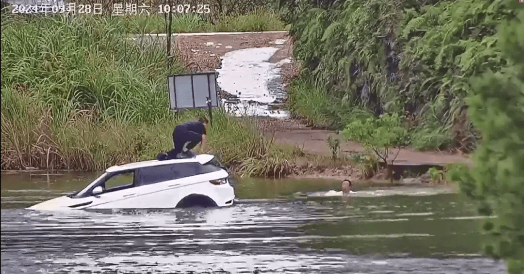 黄德辉迅速向事故现场跑去,此时落水者已从车内逃生爬到车顶,在强大的吸力下小车快速下沉,即将被淹没,落水者只好跳入水中,由于不会游泳,溺水后不停挥舞着双手在水中挣扎,情况十分危急。