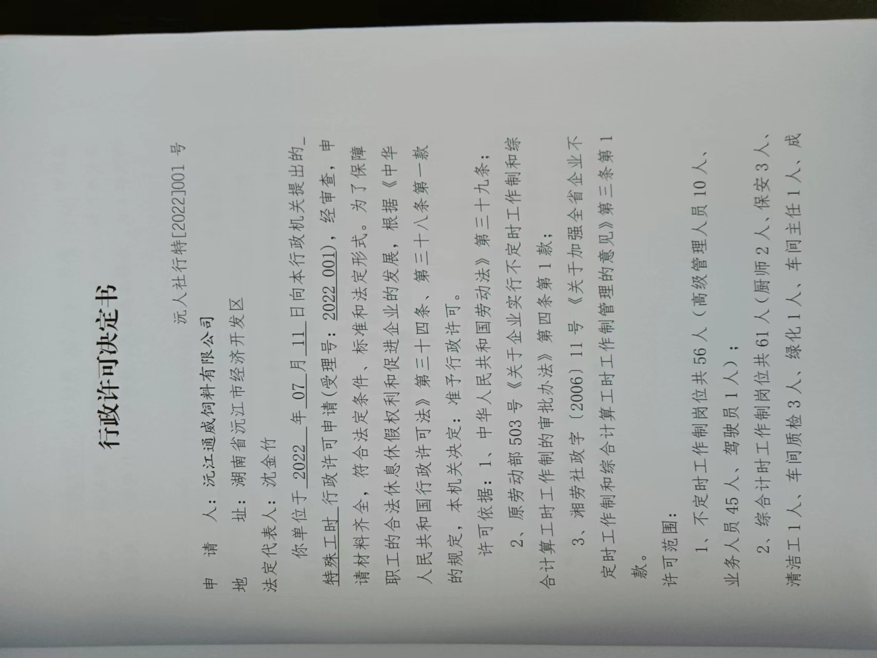 行政许可决定书公示