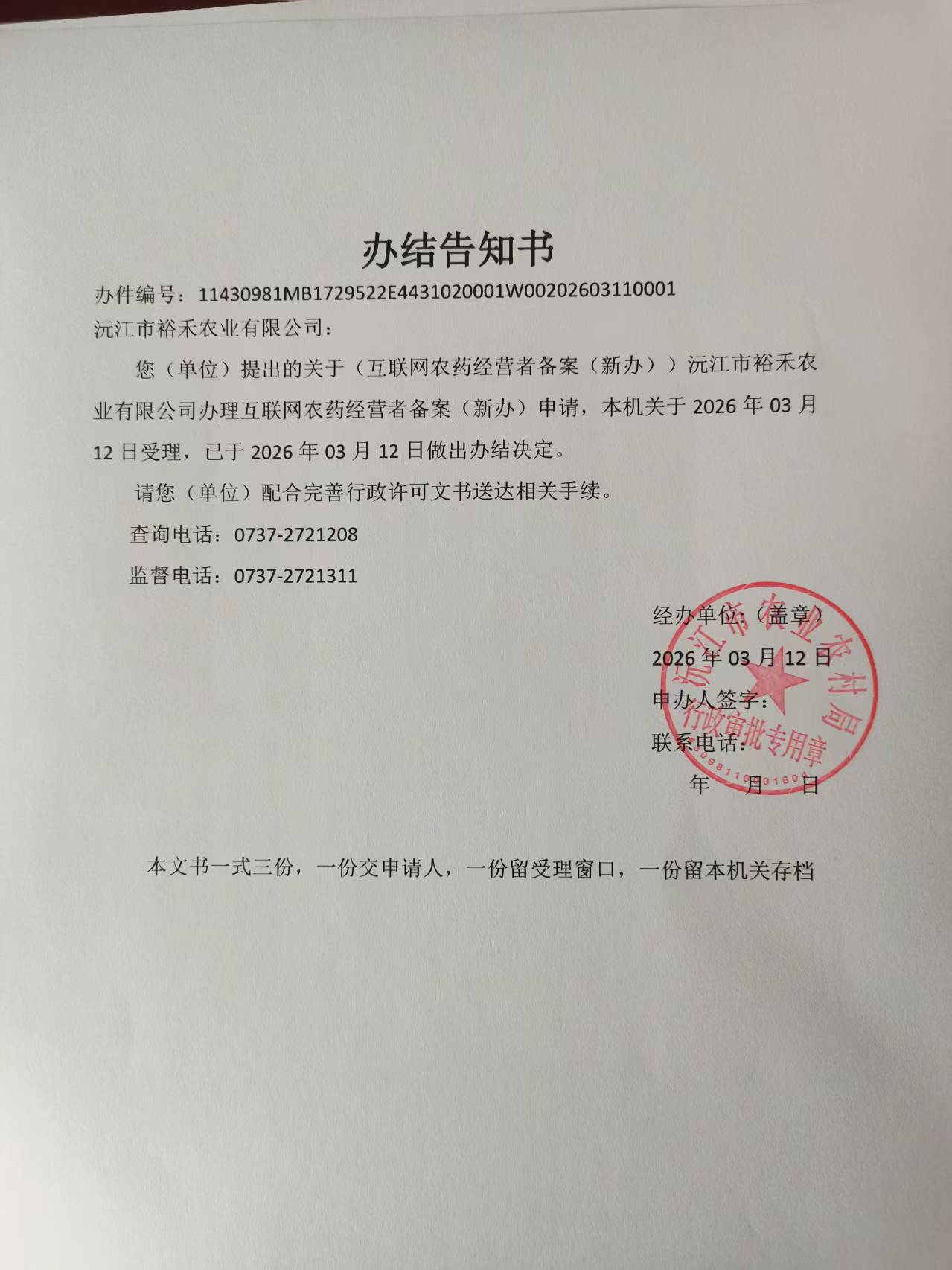互联网农药经营者备案(新办)公示【2026】08号
