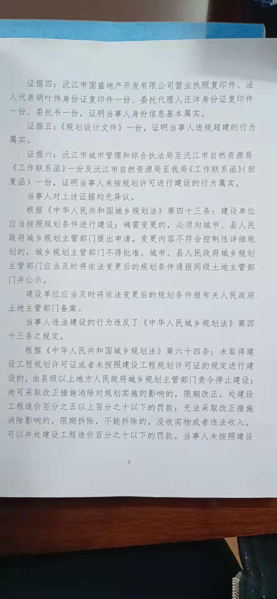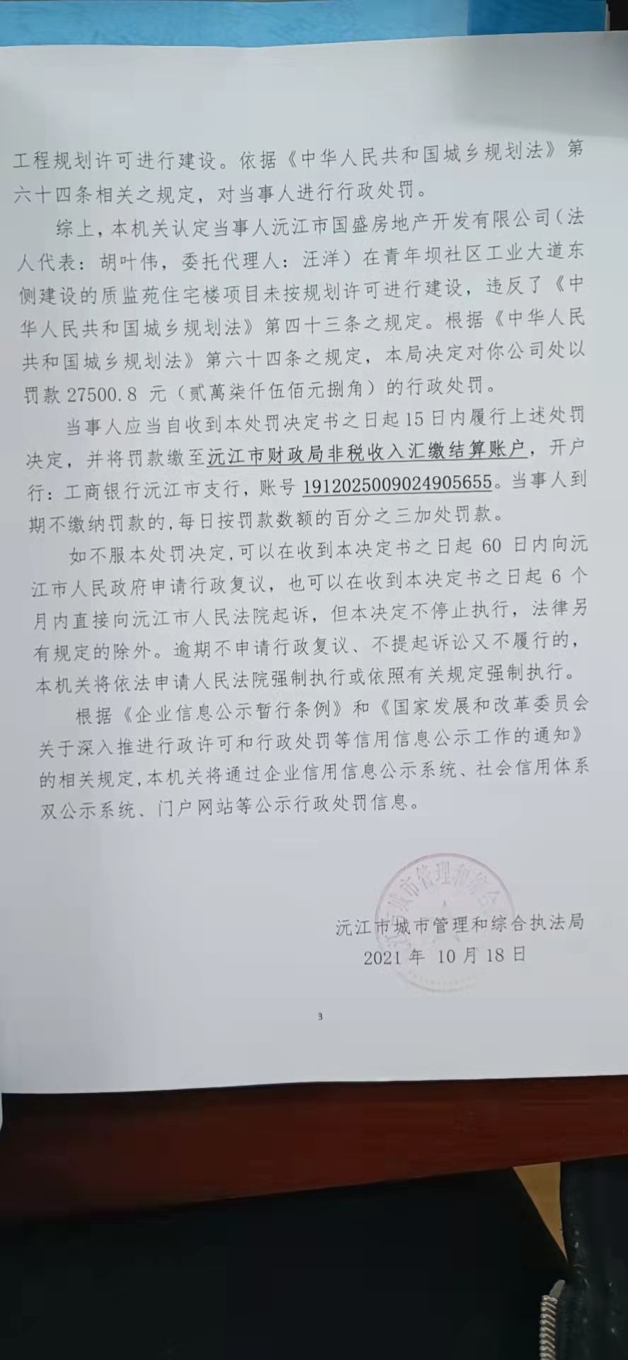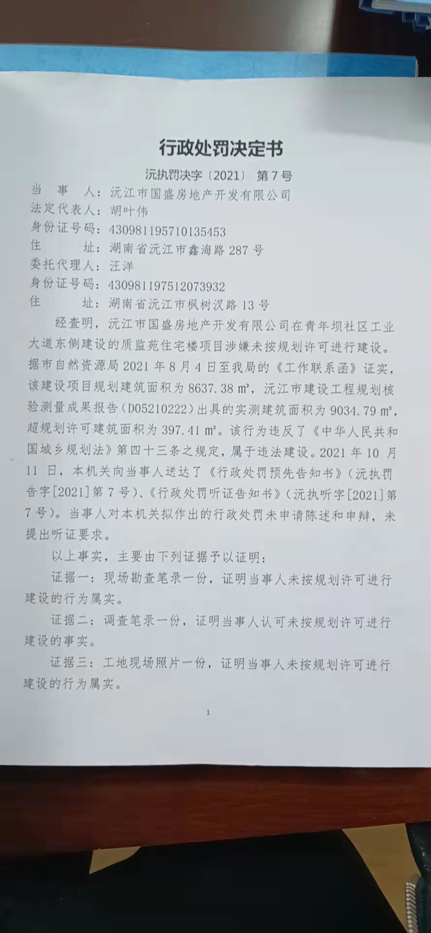 行政处罚决定书(沅江市国盛房地产开发有限公司)